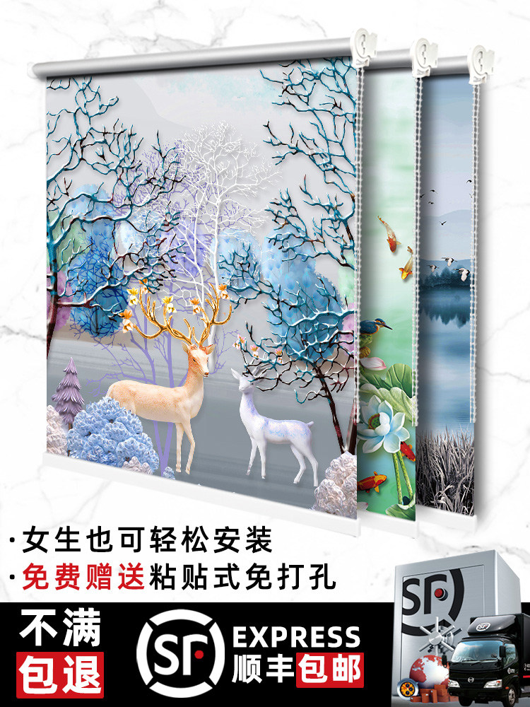 新款窗帘遮光免打孔卫生间厨房客厅卧室阳台升降百叶手拉式挂卷帘