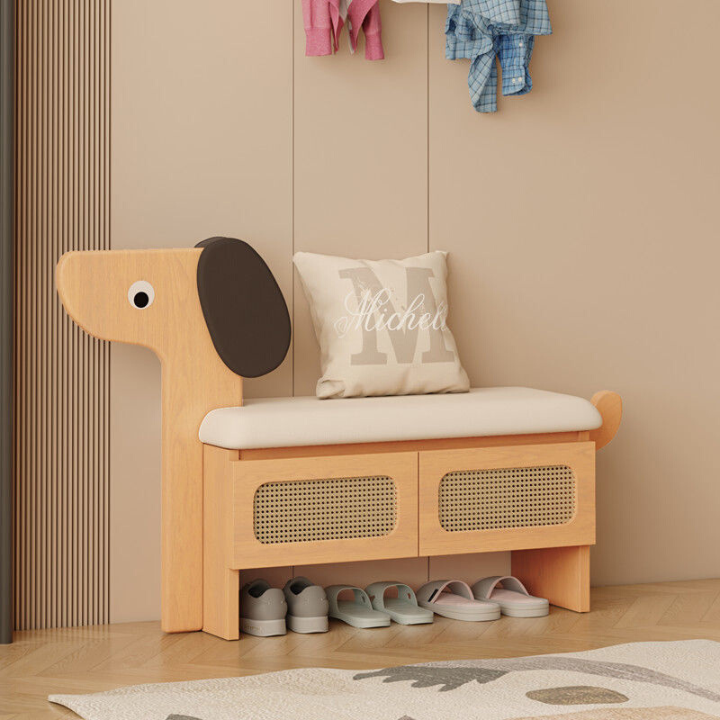 实木小狗换鞋凳门口家用可爱创意鞋架穿鞋凳进门入户鞋柜坐凳爆g^