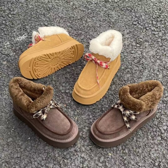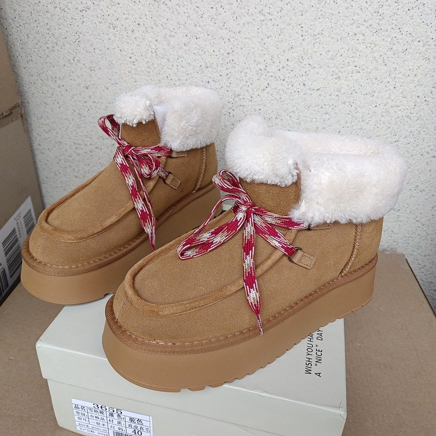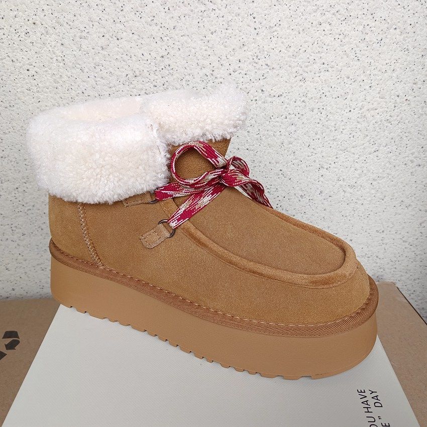 超暖冬季新款磨砂牛皮棉靴女短靴 系带真毛平底雪地靴马丁靴35-40