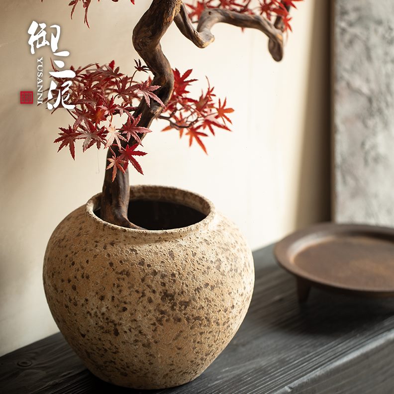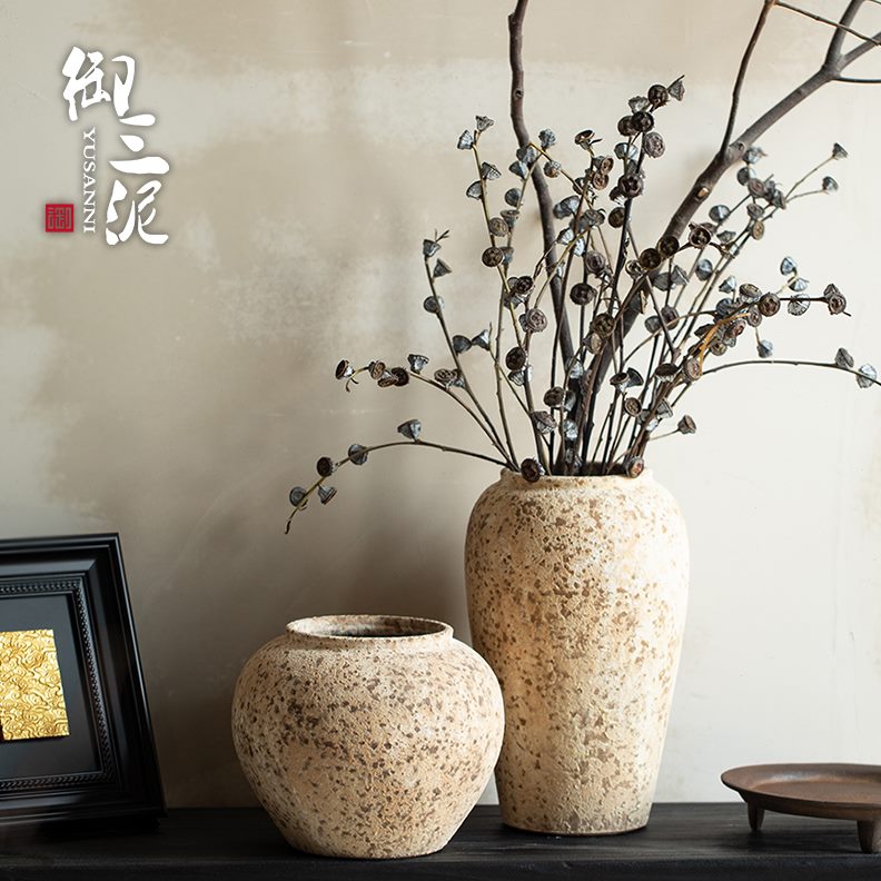 民宿水培干花家居摆件陶瓷可中式陶罐粗陶复古花瓶插花盆