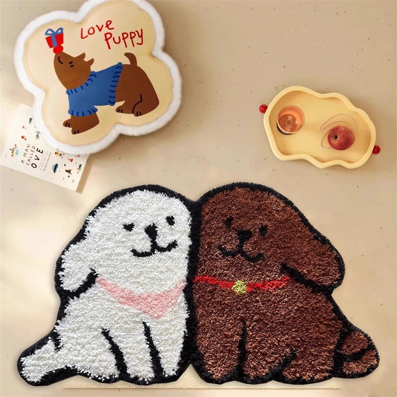狗狗植绒浴室仿羊绒地毯可爱客厅卧室床边毯脚垫卫浴吸水防滑地垫