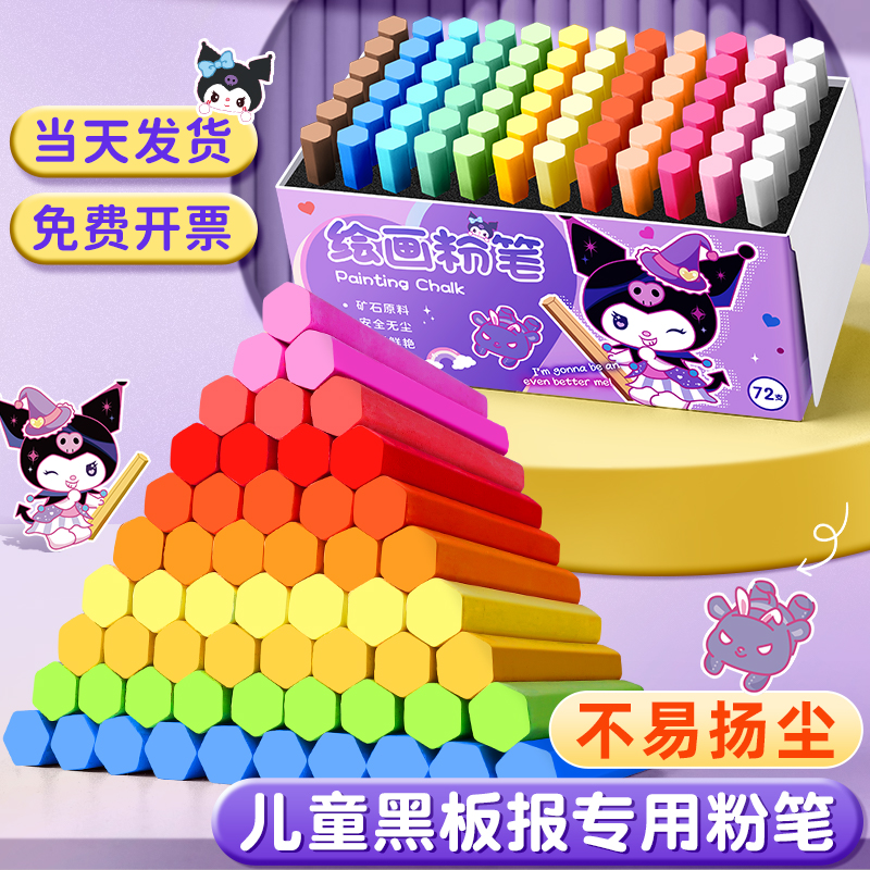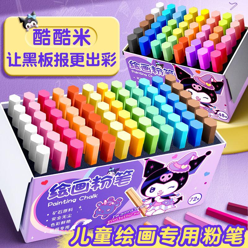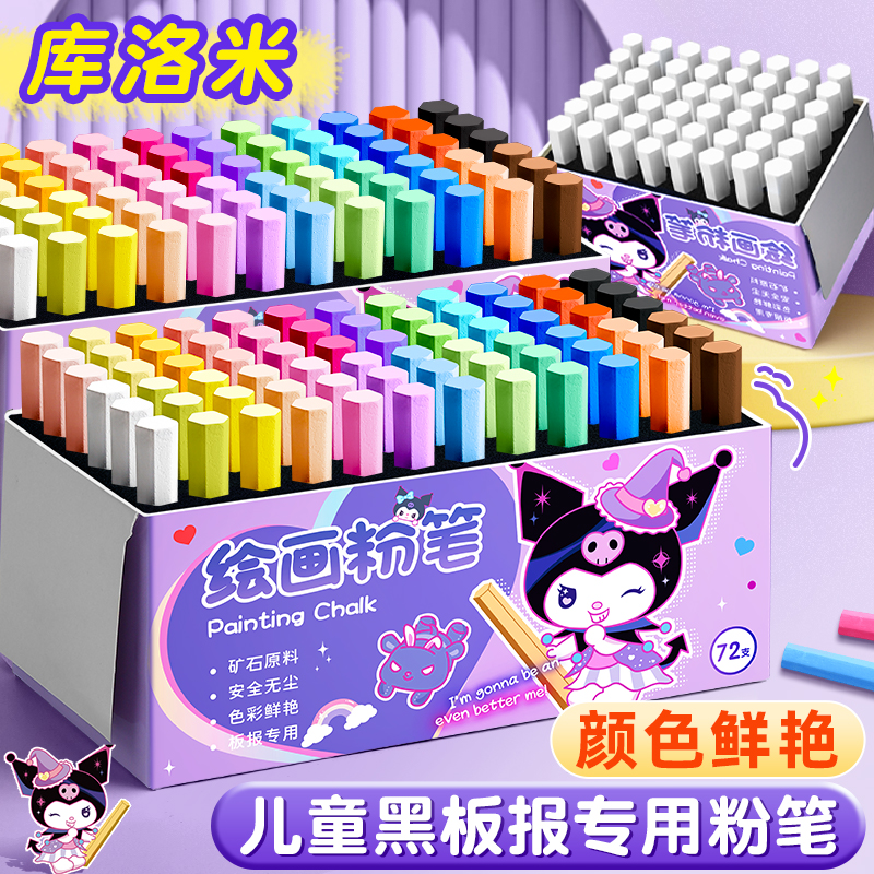 库洛米彩色粉笔无尘无毒儿童黑板报教师专用鲜艳粉笔水溶性不脏手白色粉笔家用高档高级疯狂绘画专用显色粉笔