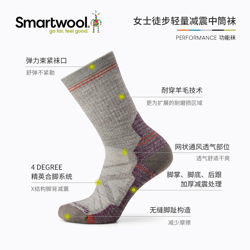 Smartwool女徒步轻量减震中筒袜登山袜户外羊毛袜跑步运动袜1573
