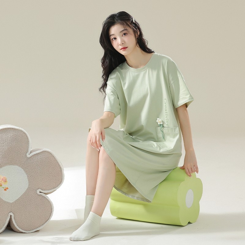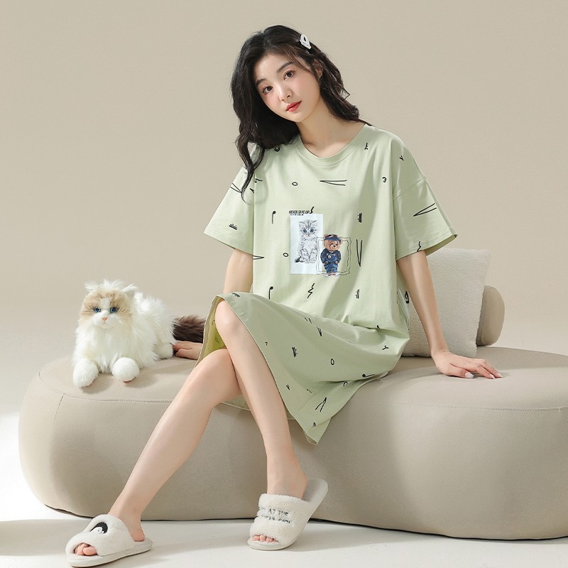 2025睡裙女夏季纯棉短袖睡衣夏性感可爱裙子孕妇可穿大码连衣裙