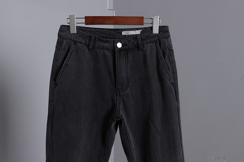 黑灰加绒小脚牛仔裤女冬季高腰