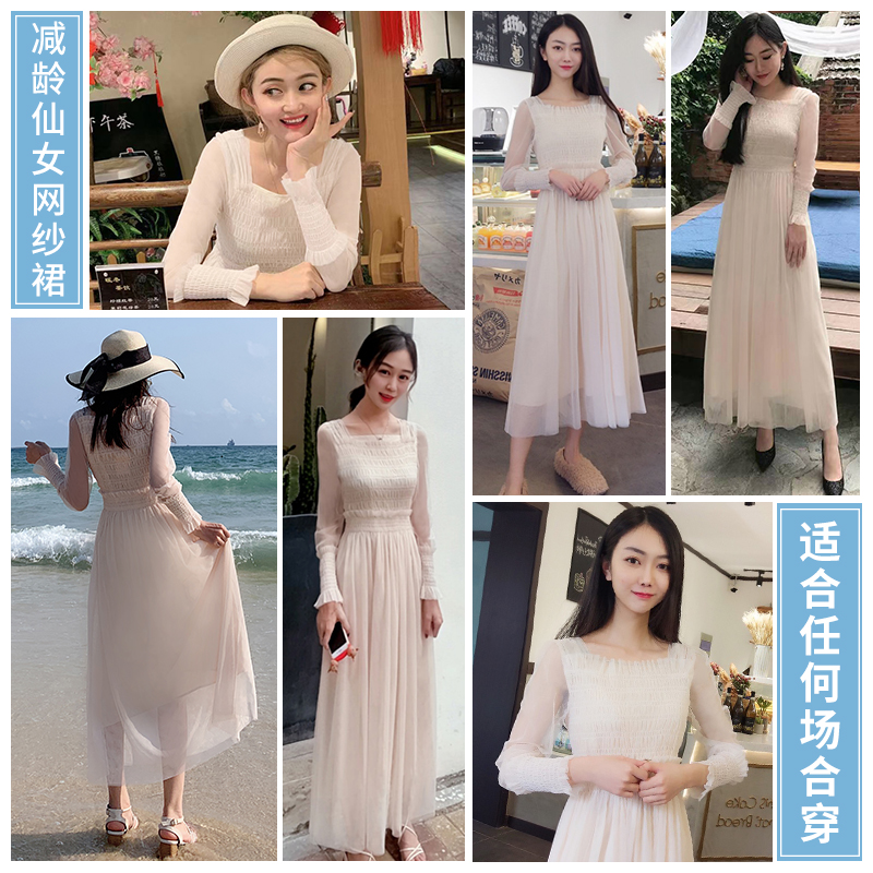 法国小众连衣裙超仙显瘦春装2025新款春秋长裙网纱法式复古裙子女