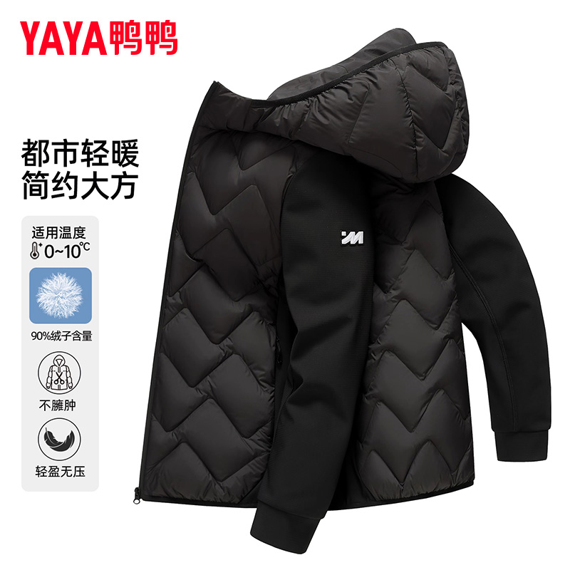 鸭鸭漫步轻薄羽绒服男女同款2025秋冬季新款户外拼接保暖连帽外套