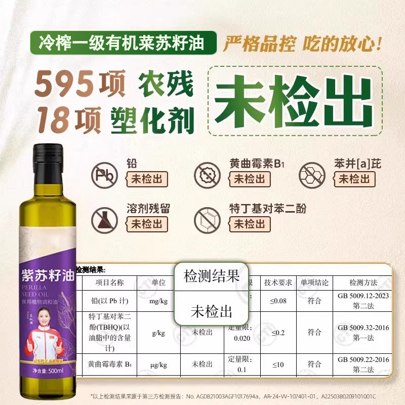 一级冷榨有机紫苏籽油官方旗舰店四项有机低温口服直饮纯食用热炒
