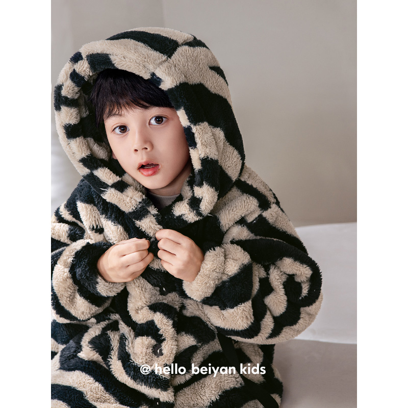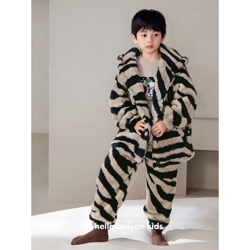 贝妍冬季加厚保暖珊瑚绒儿童睡衣