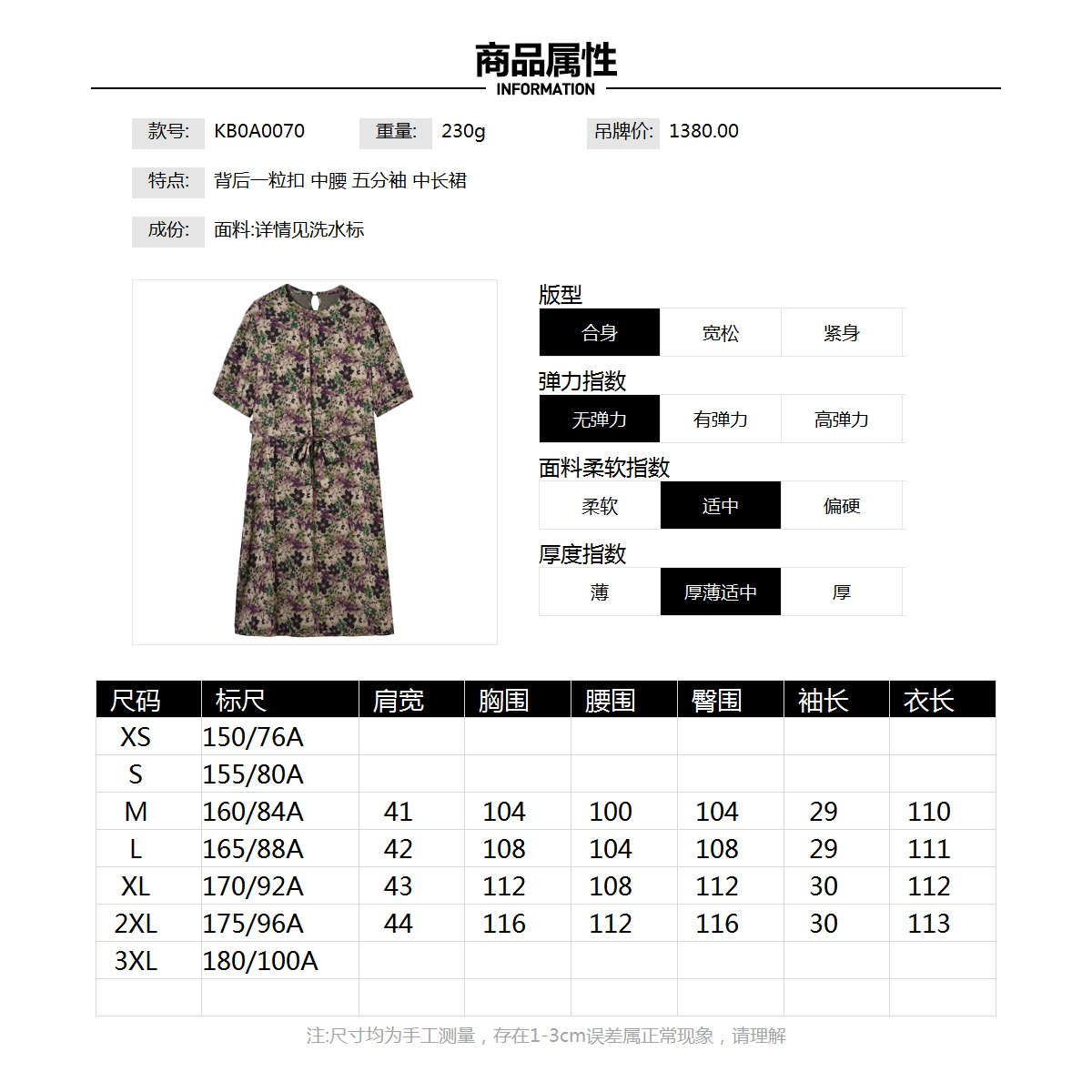 Outlets专柜撤柜正品 KB夏装2025新款复古碎花中长裙一粒扣连衣裙