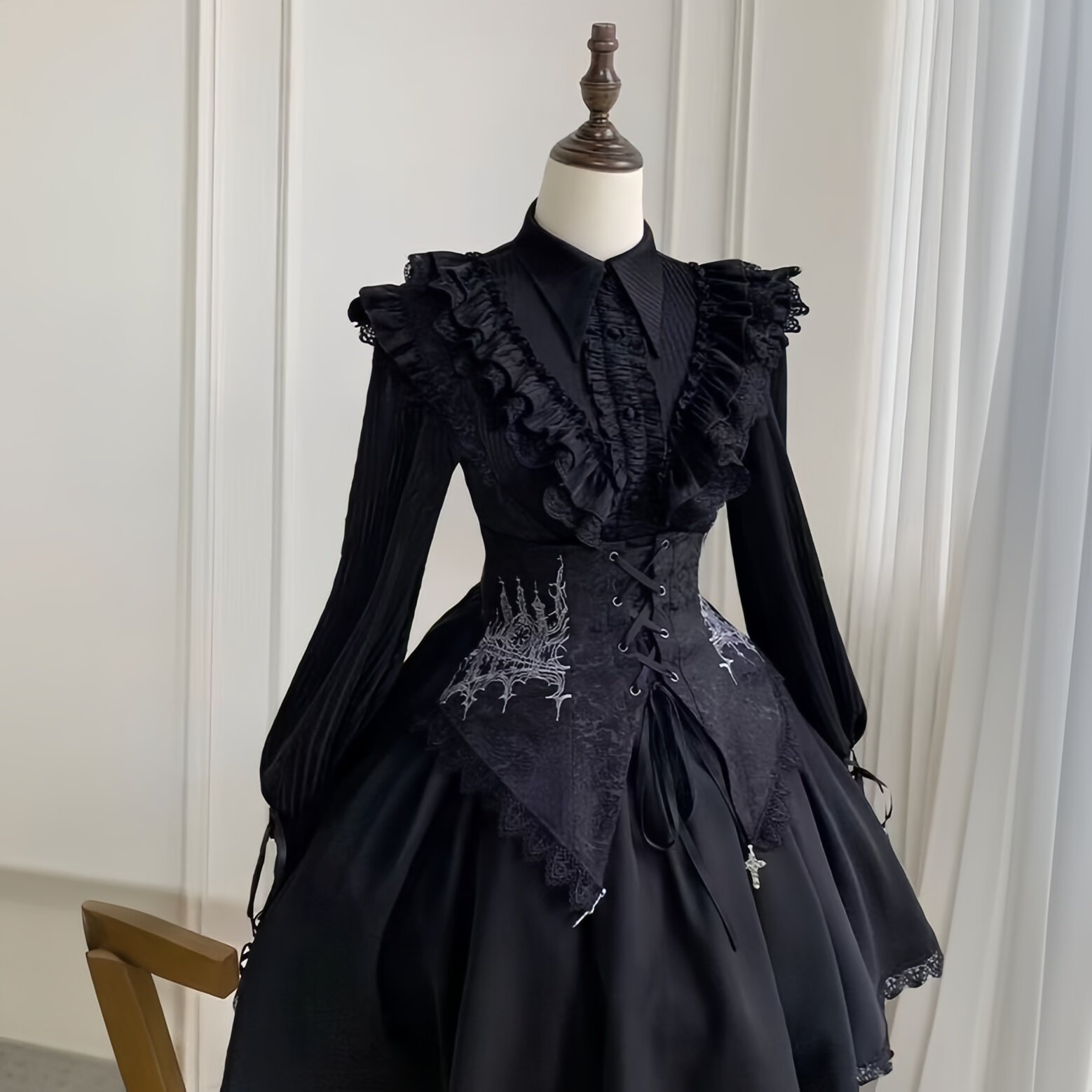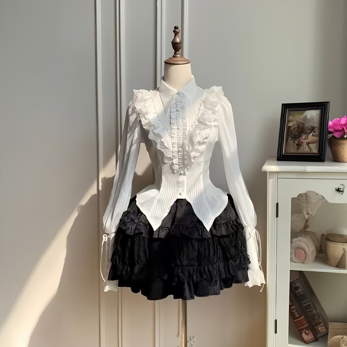哥特lolita内搭薄款灯笼袖衬衫亚文化废土风正太王子装洛丽塔衬衫