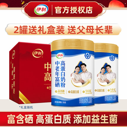 伊利中老年富硒高蛋白牛奶粉700g*2罐 中老年成人0蔗糖早餐营养品