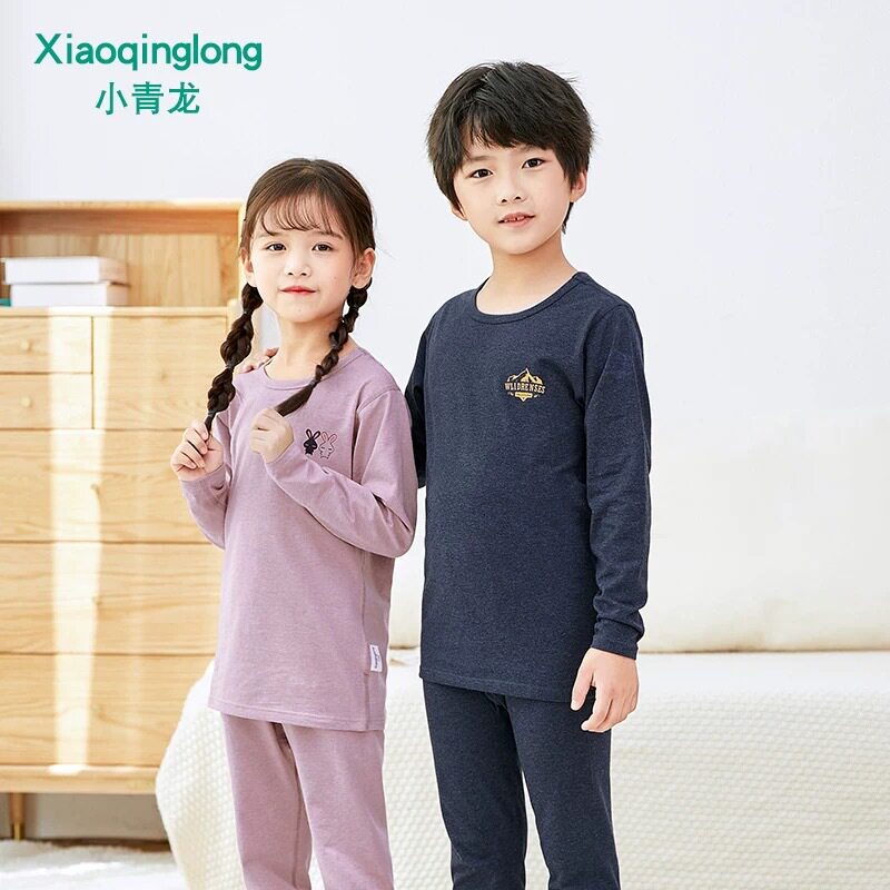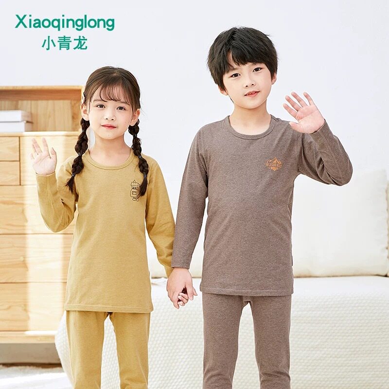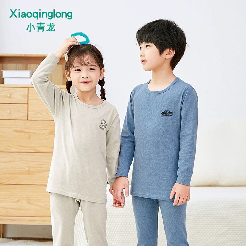 小青龙儿童内衣色纺棉莱卡男童女童秋衣秋裤中大童青少年7140睡衣