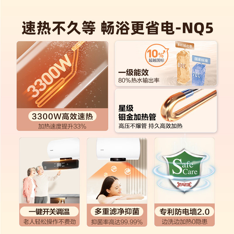 海尔出品统帅电热水器一级能效家用卫生间洗澡速热60升NQ5