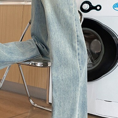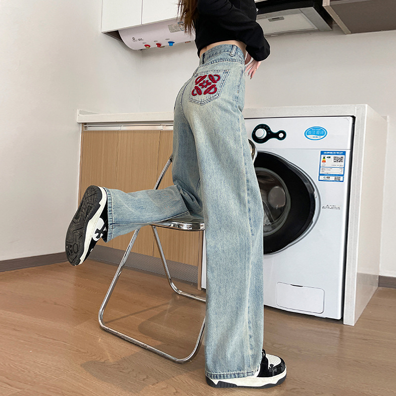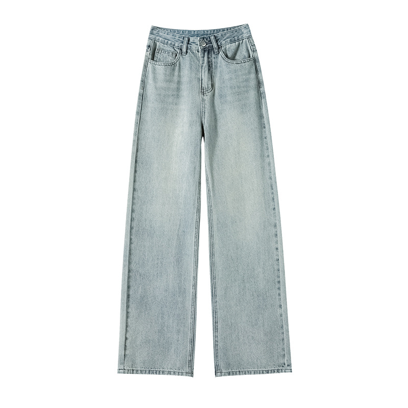 浅蓝色时尚高腰牛仔裤直筒裤女修身显瘦百搭小个子辣妹风阔腿裤子