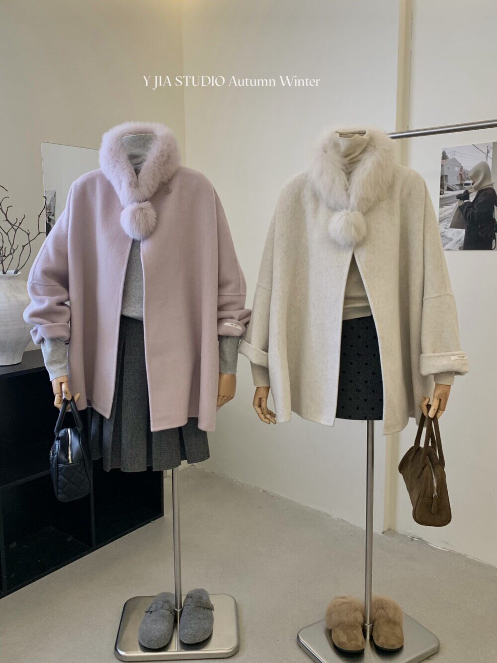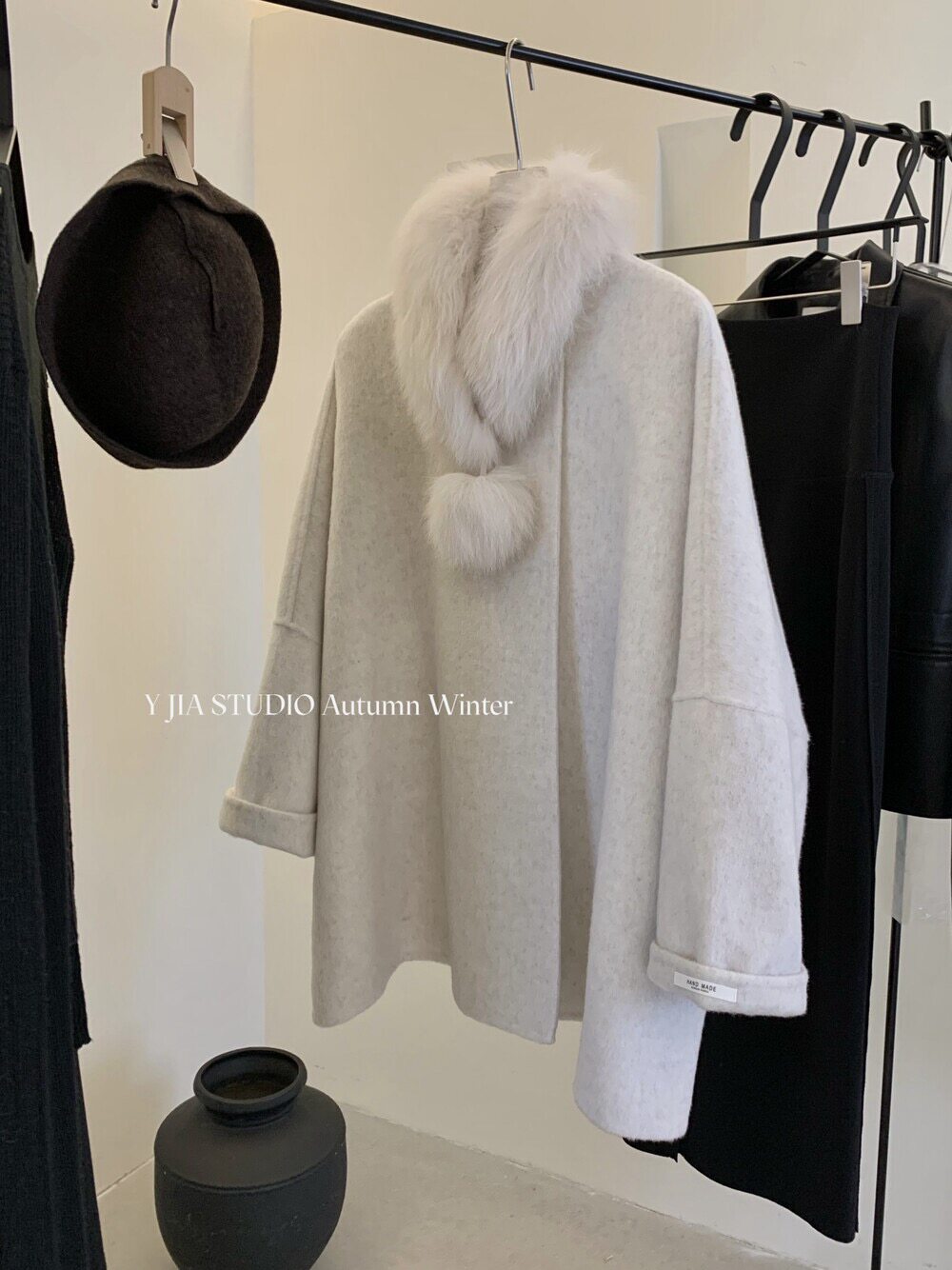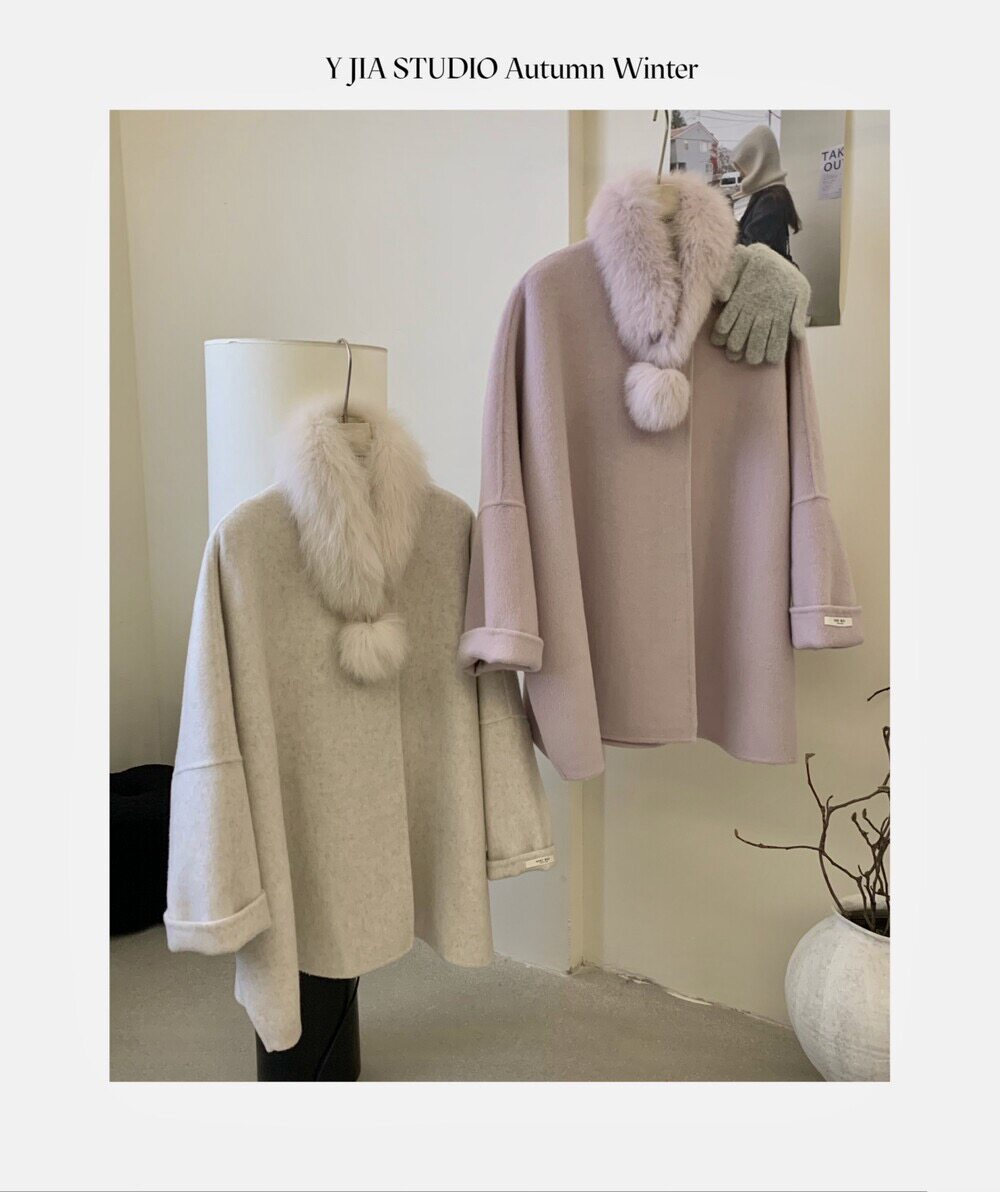 狐狸毛领名媛气质斗篷大衣法式高级感秋冬新款手工羊绒毛呢外套女