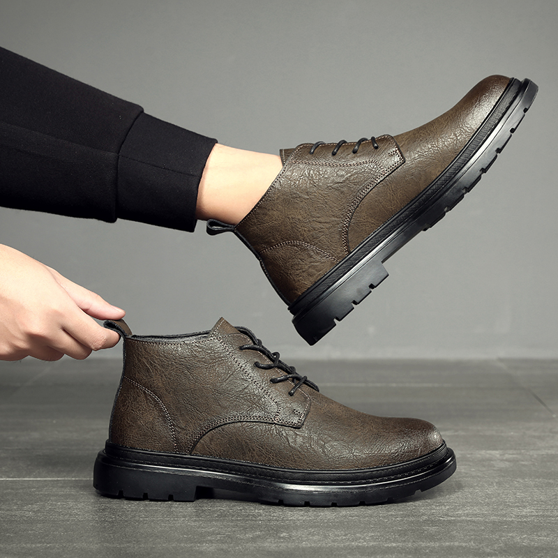 冬季马丁靴男士真皮加绒英伦风皮靴秋季低帮短靴子男款休闲工装鞋