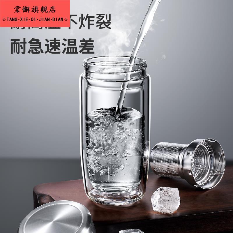 双层玻璃杯水杯男个人专用高档车载茶水分离泡茶杯子加厚隔热定制