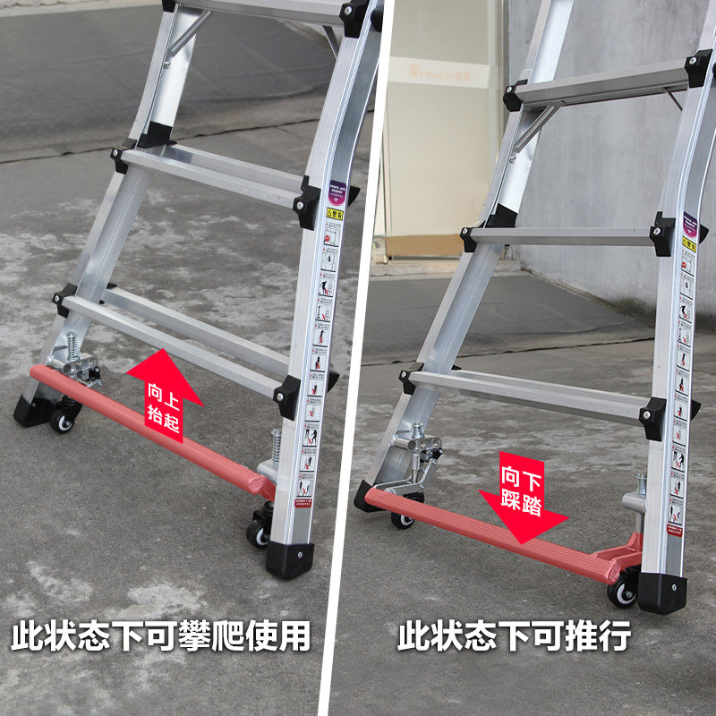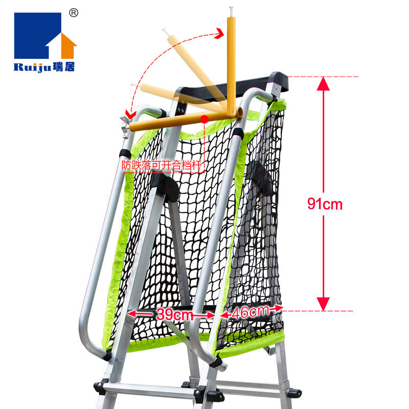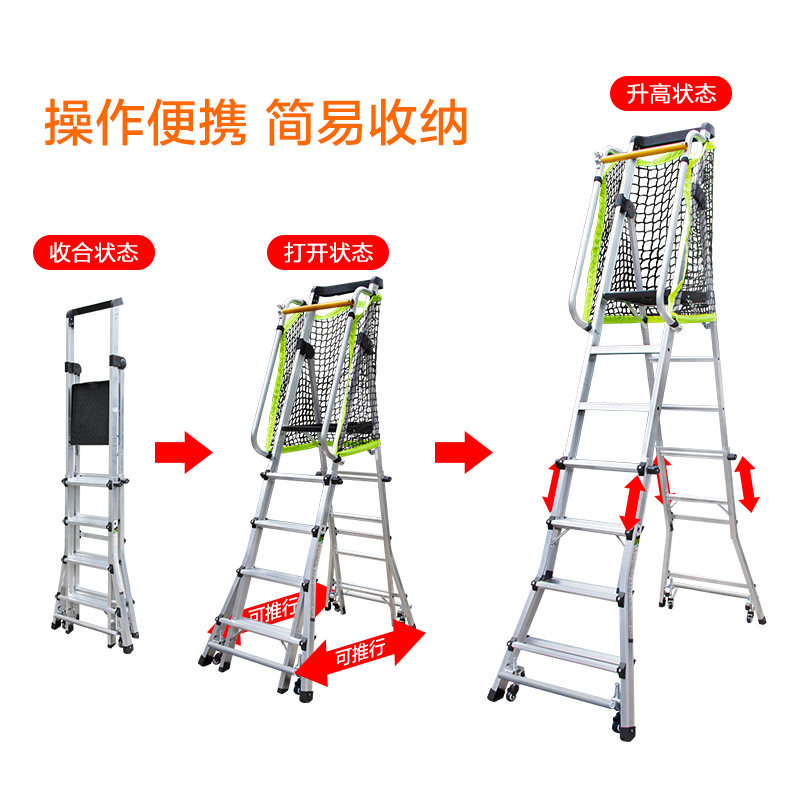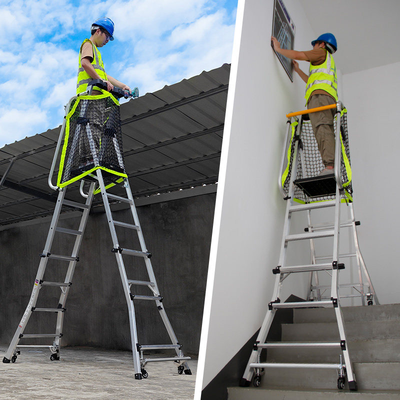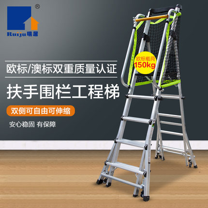 瑞居铝合金围栏安全平台梯带轮移动工程梯折叠伸缩人字梯仓储理货