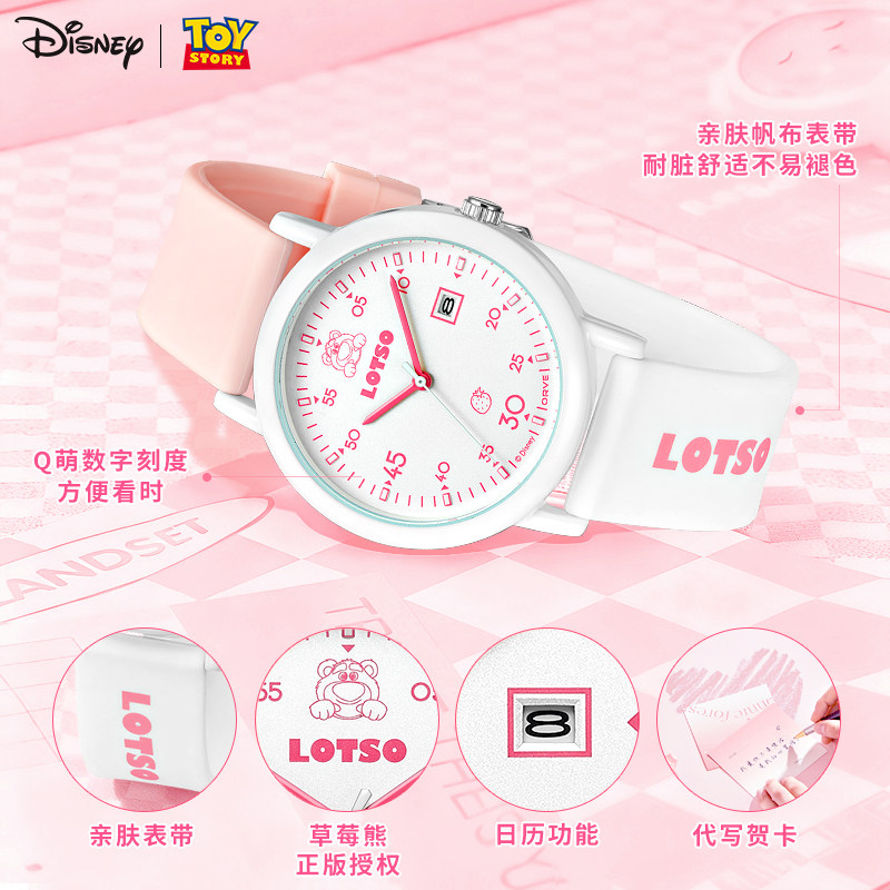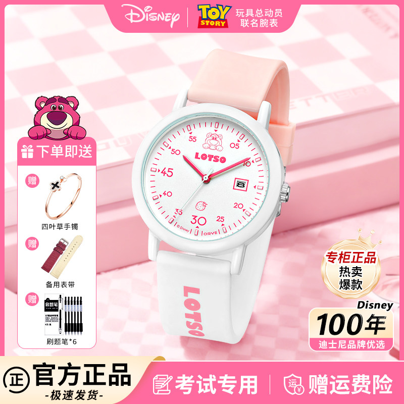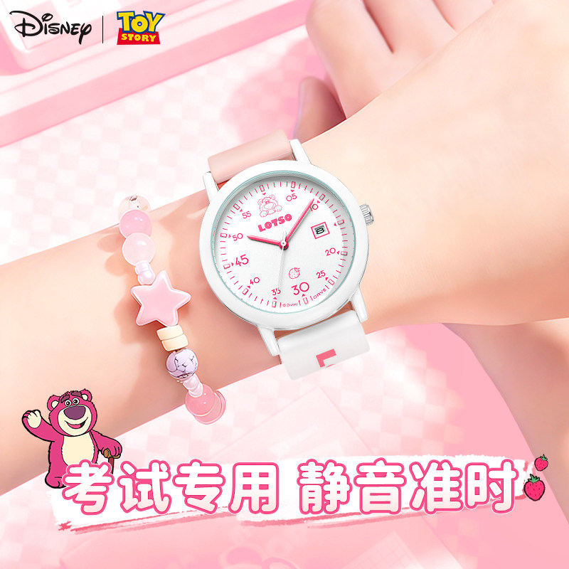 迪士尼手表女学生初高中考试专用只看时间草莓熊联名女孩新年礼物