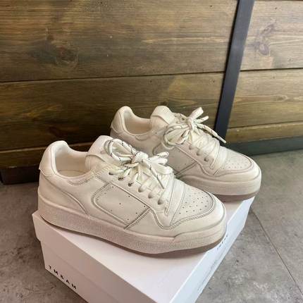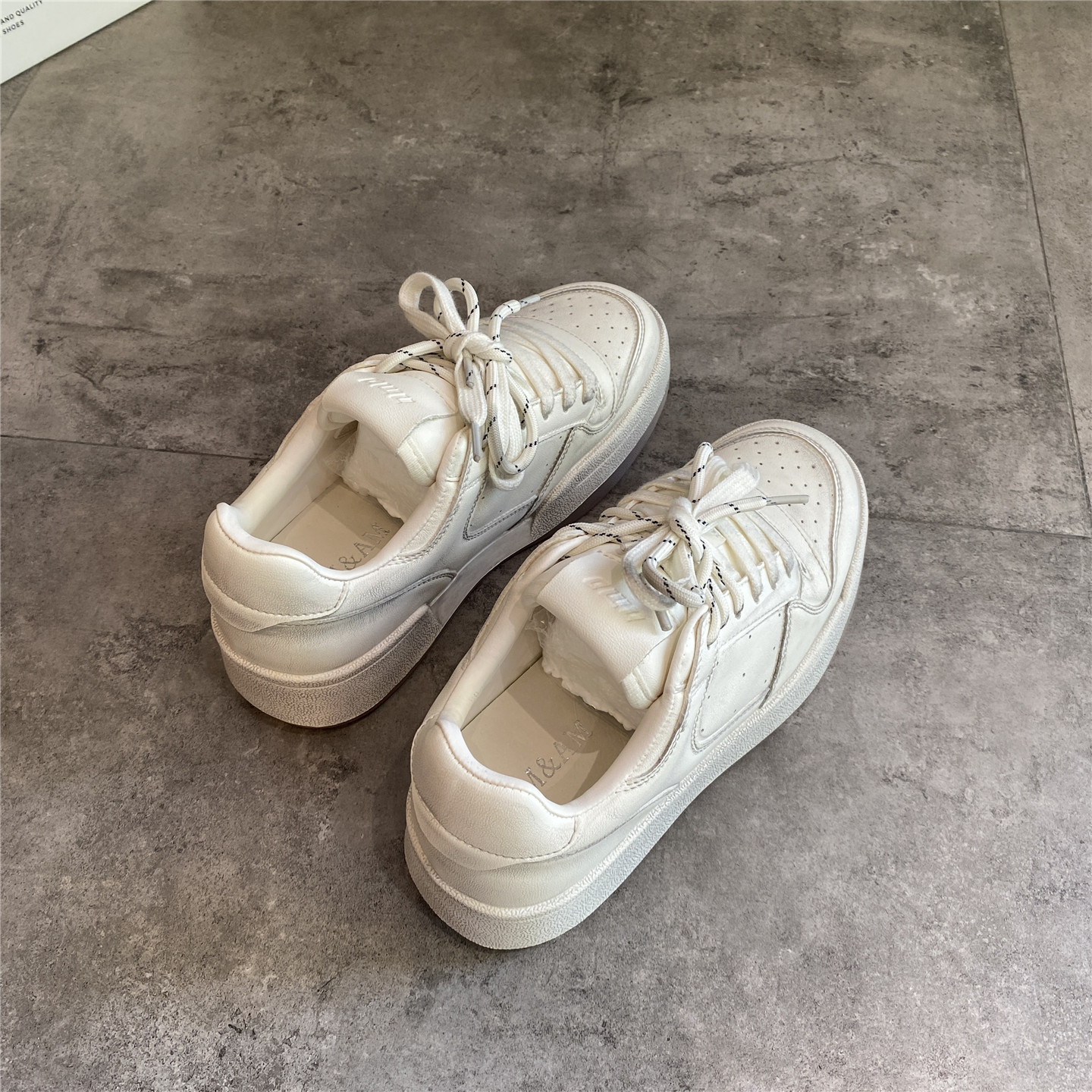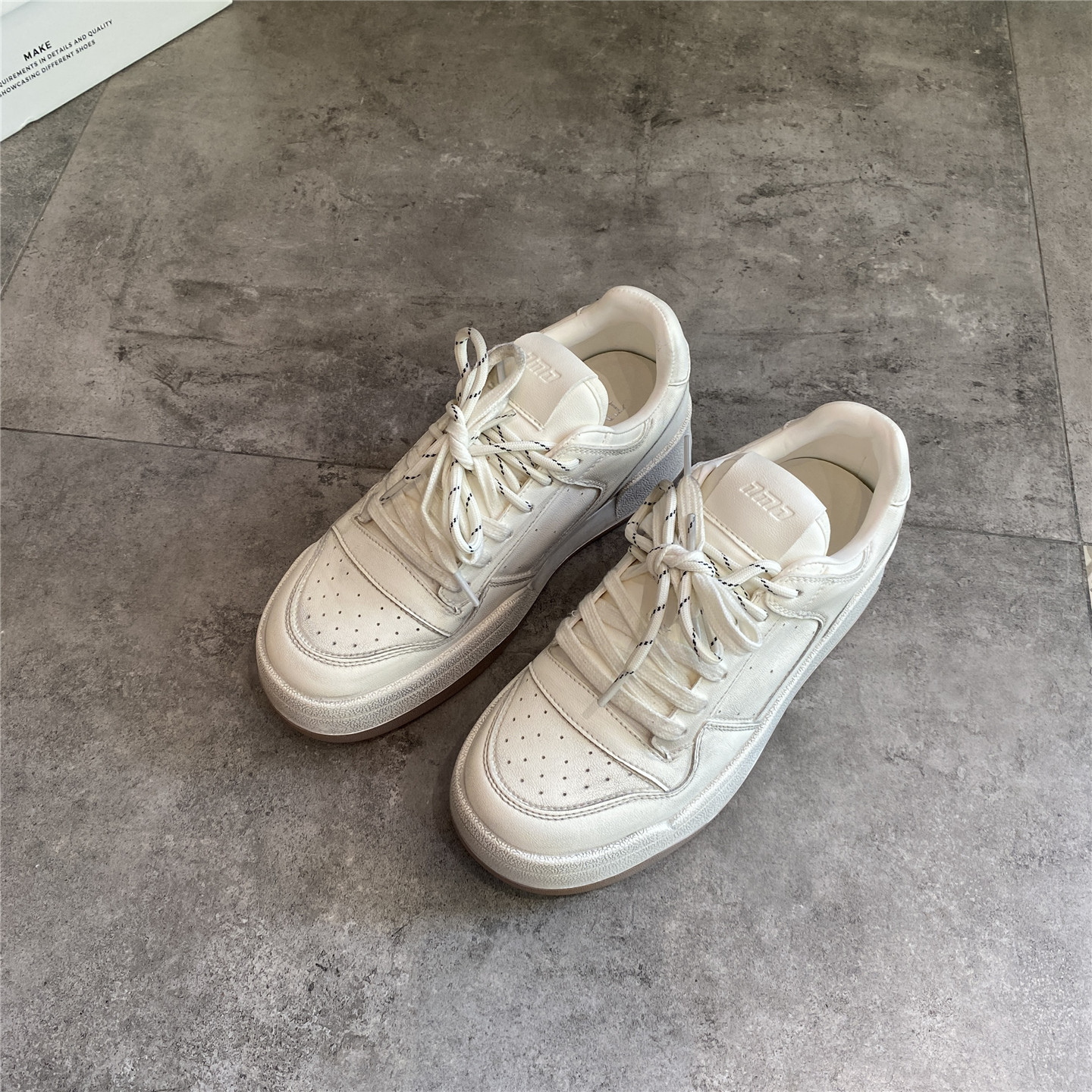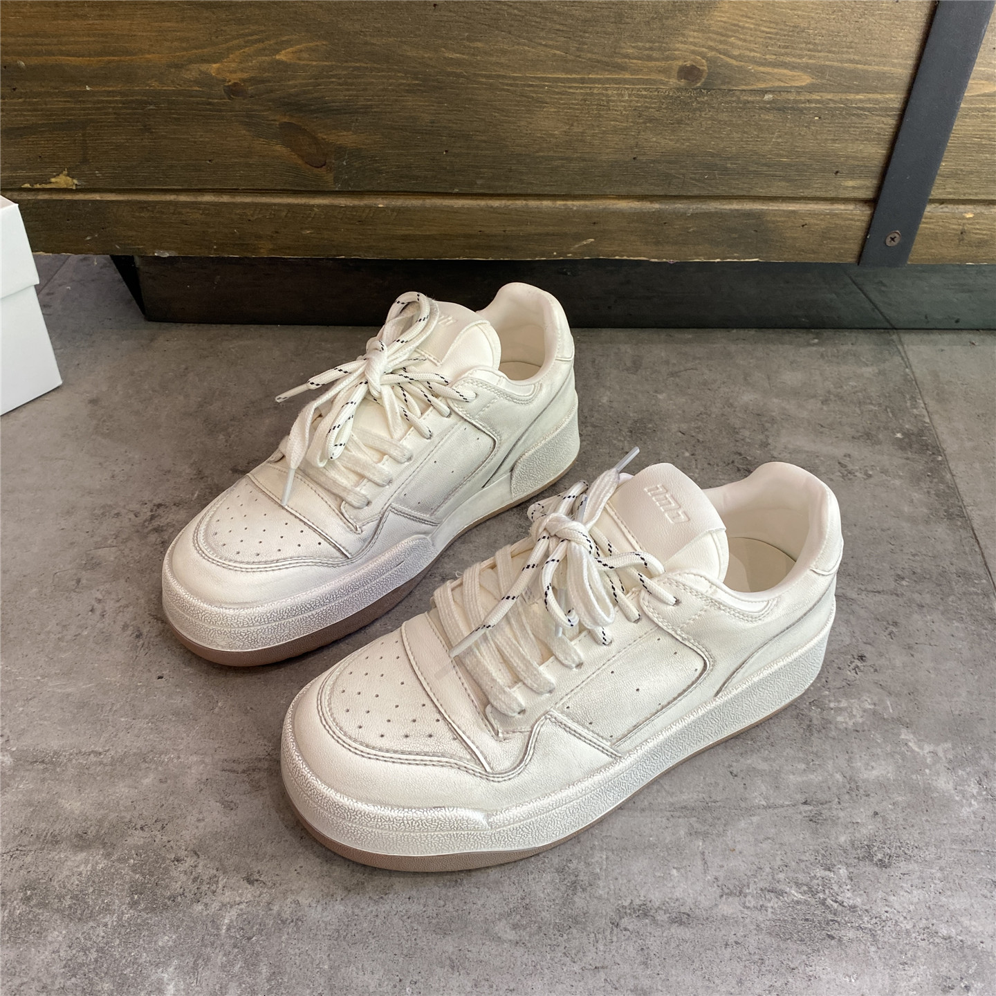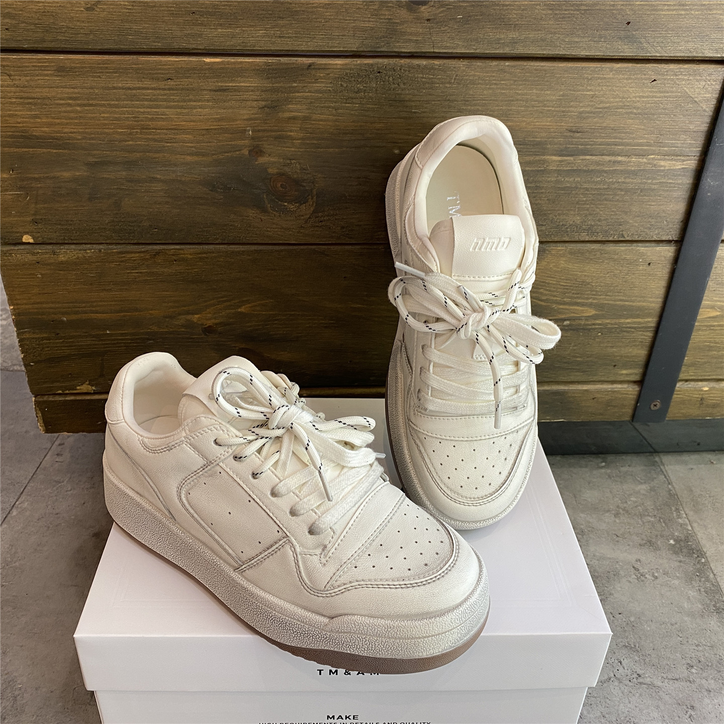 真皮厚底小白鞋女2025秋季新款舒适韩版圆头系带百搭休闲运动板鞋