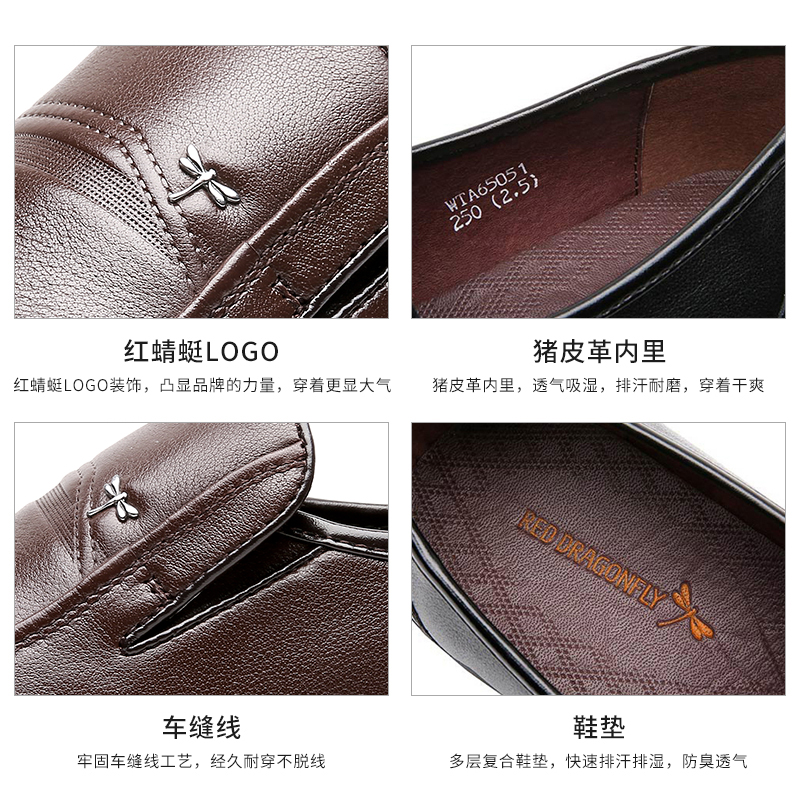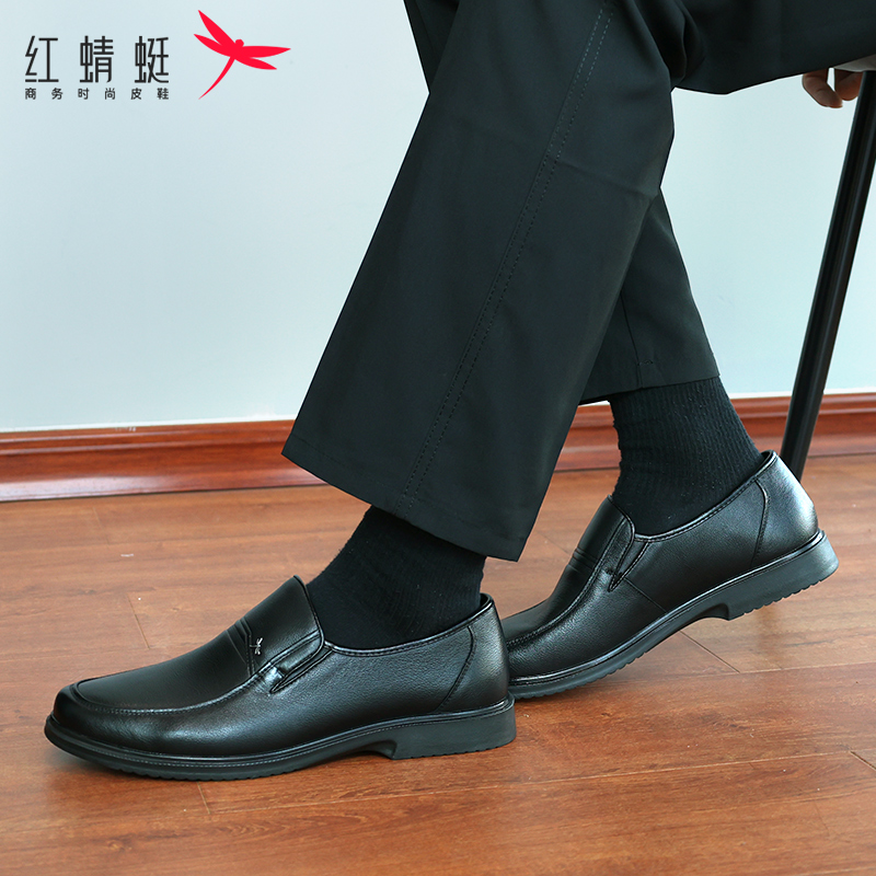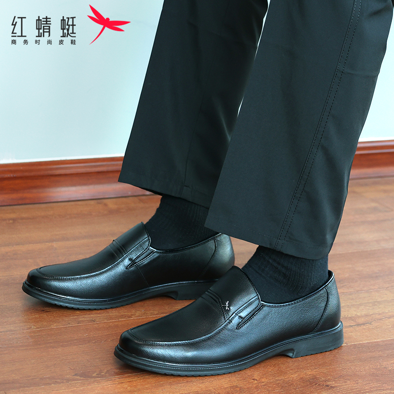 红蜻蜓男鞋春秋季正品男真皮商务休闲鞋中老年爸爸鞋软底正装皮鞋