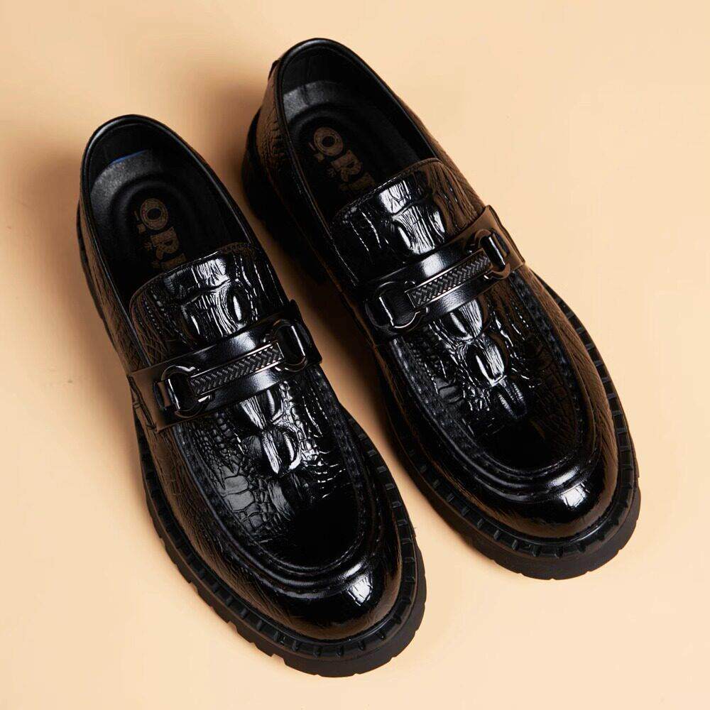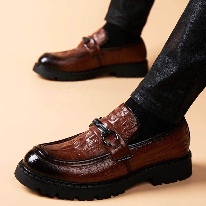 皮鞋男款商务正装真皮秋冬新款休闲男鞋英伦厚底懒人一脚蹬豆豆鞋