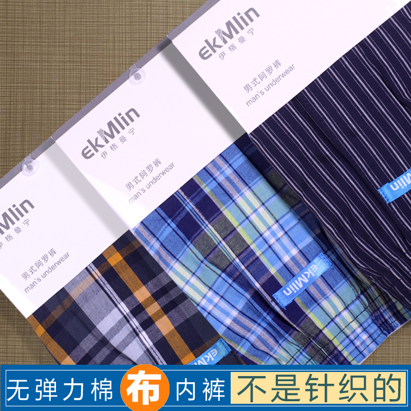 3条装 阿罗裤 薄软一片式梭织纯棉男士宽松平角大码中腰内裤透气