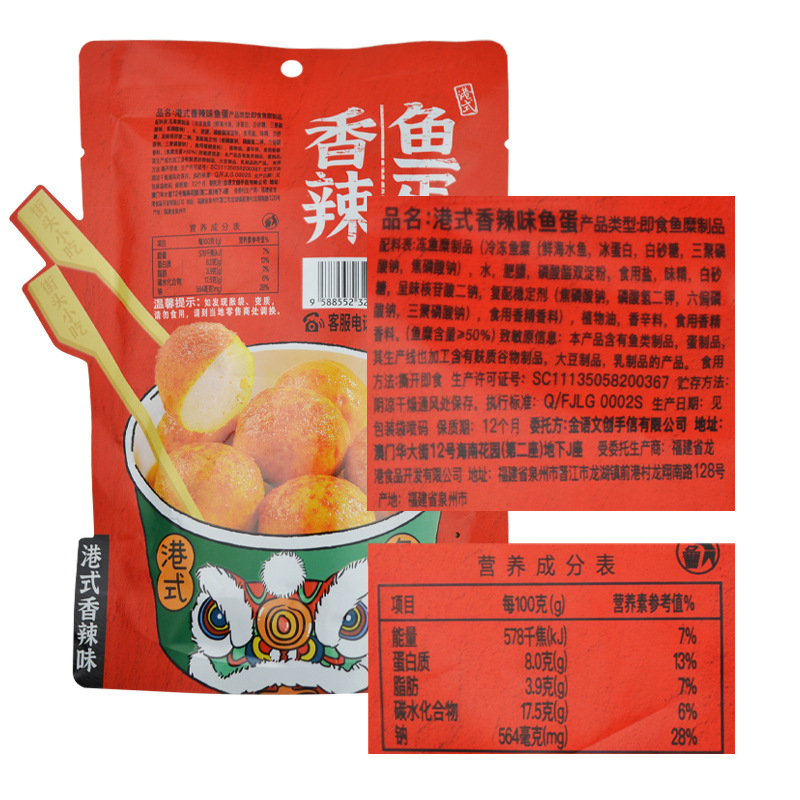 金语港式咖喱鱼蛋即食香辣鱼蛋蛋零食烧烤味速食休闲食品小吃鱼丸