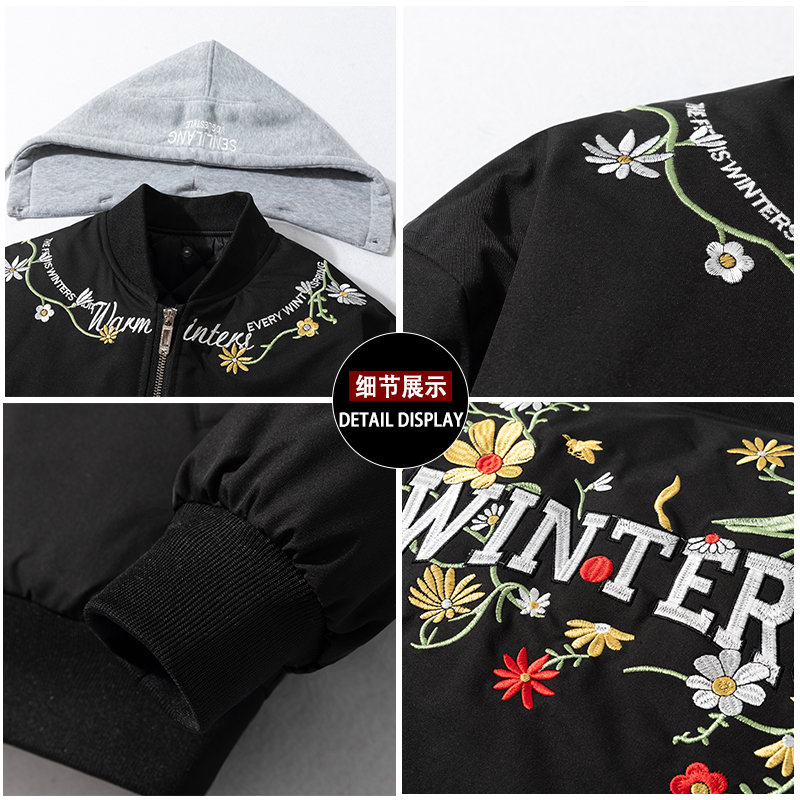 美式高级感花卉字母刺绣飞行员夹克男情侣春秋冬季棒球棉衣服外套