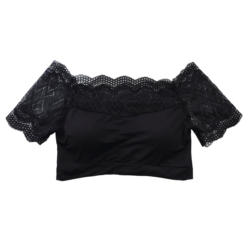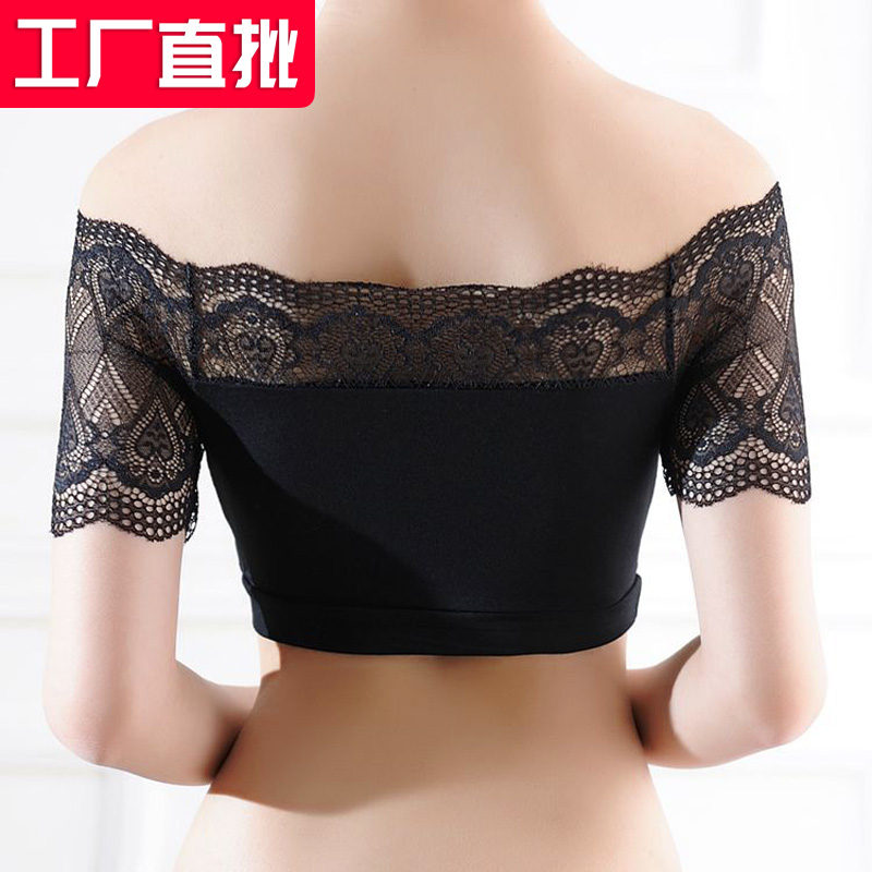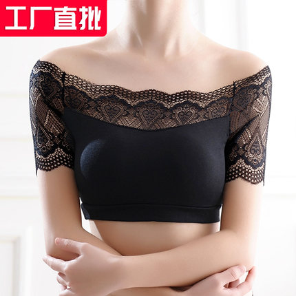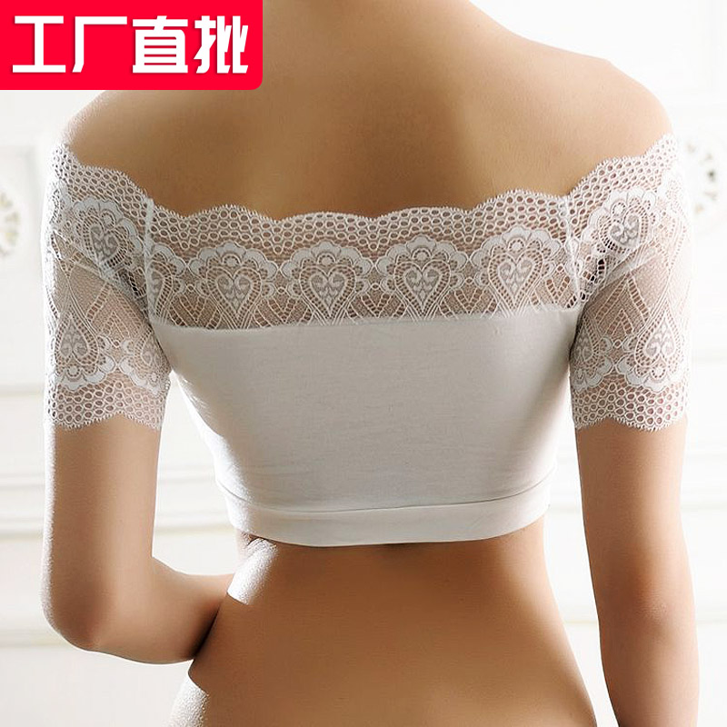 一字领露肩蕾丝半截打底短袖背心带胸垫抹胸莫代尔百搭打底内衣女