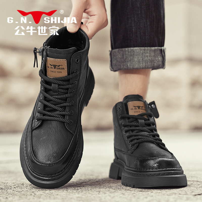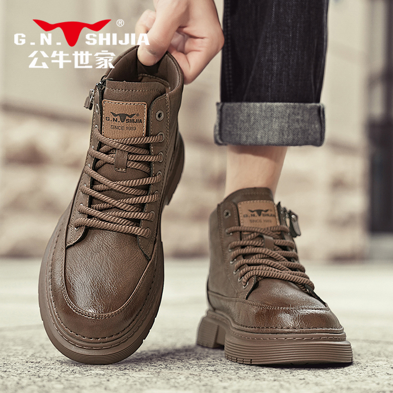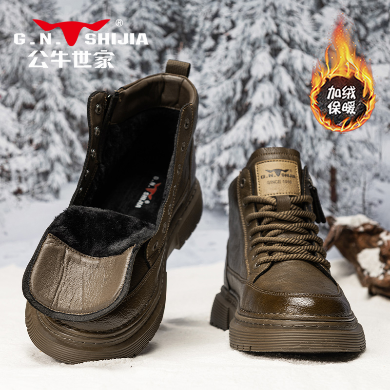 公牛世家男鞋2025新款秋季加绒保暖二棉鞋高帮板鞋男士中帮马丁靴