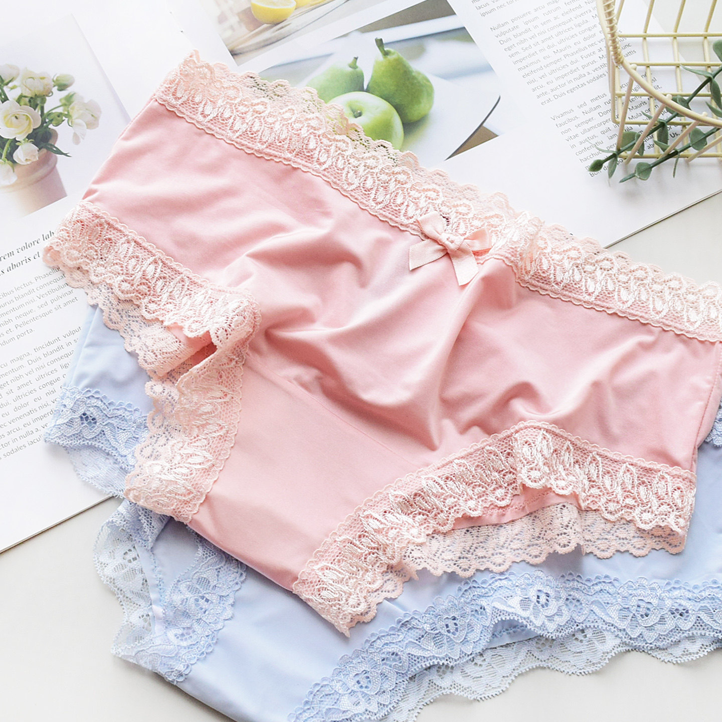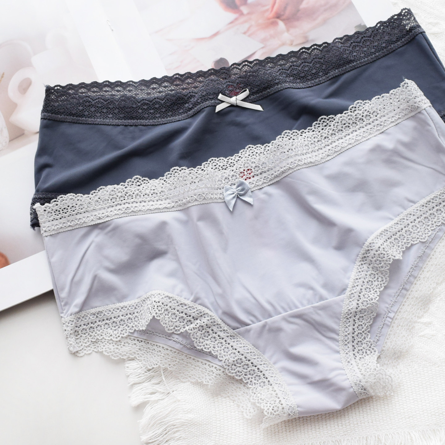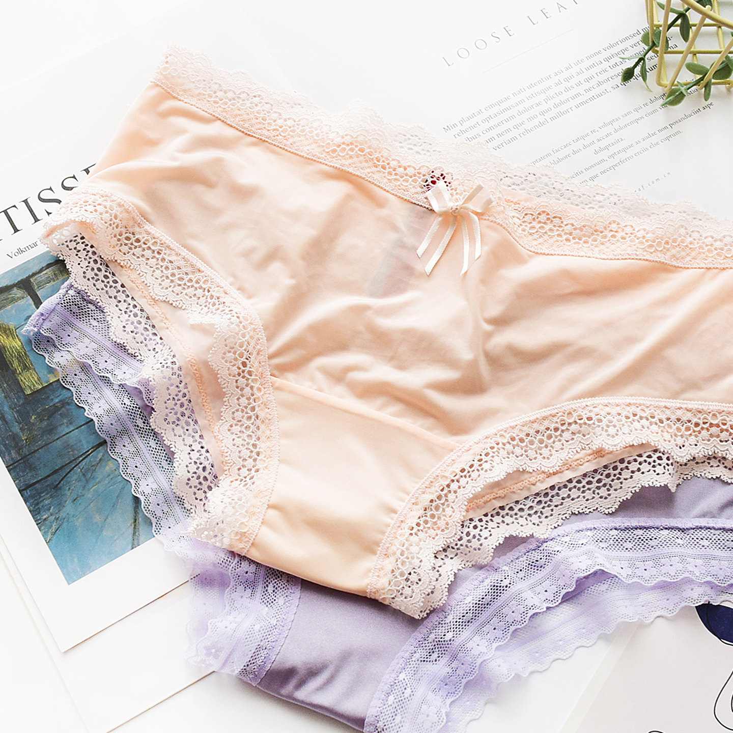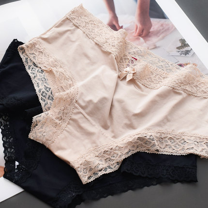 内裤女性感欧美低腰牛奶丝蕾丝无痕纯色黑色丝滑冰丝女士三角内裤