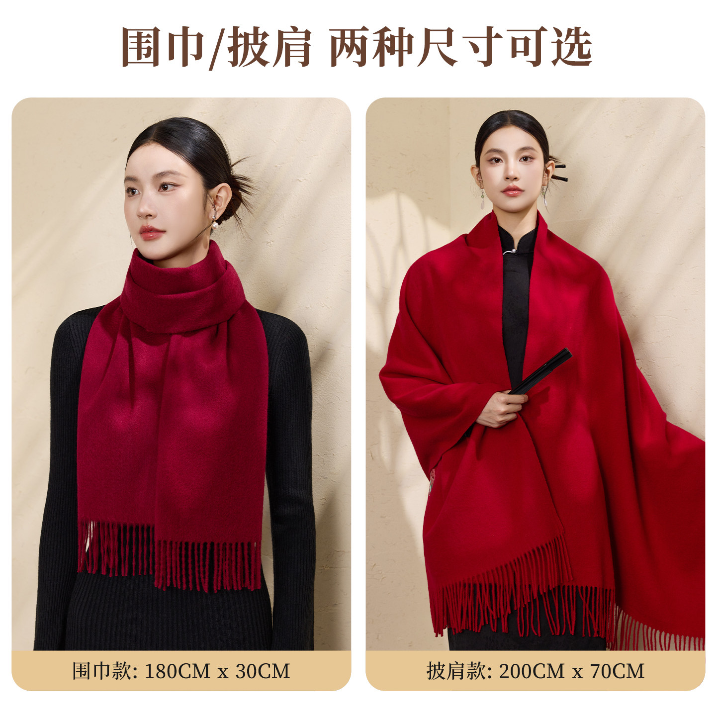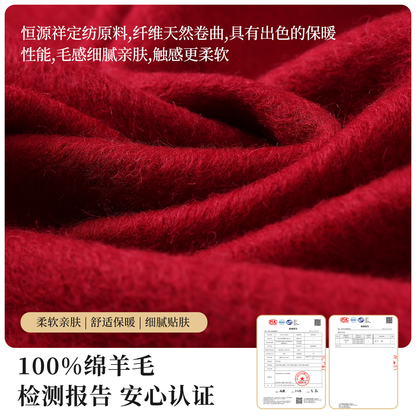 恒源祥纯羊毛围巾女士冬季酒红保暖披肩送长辈妈妈生日礼物礼盒装