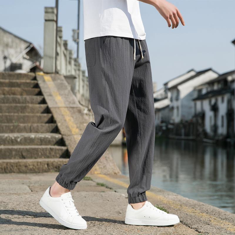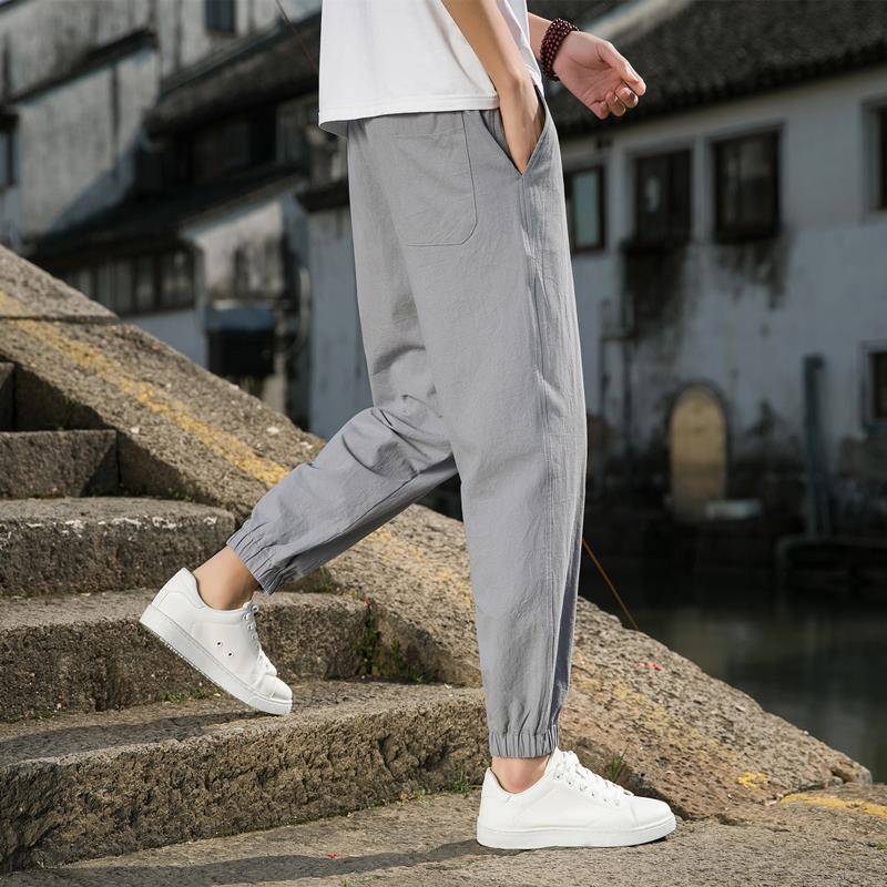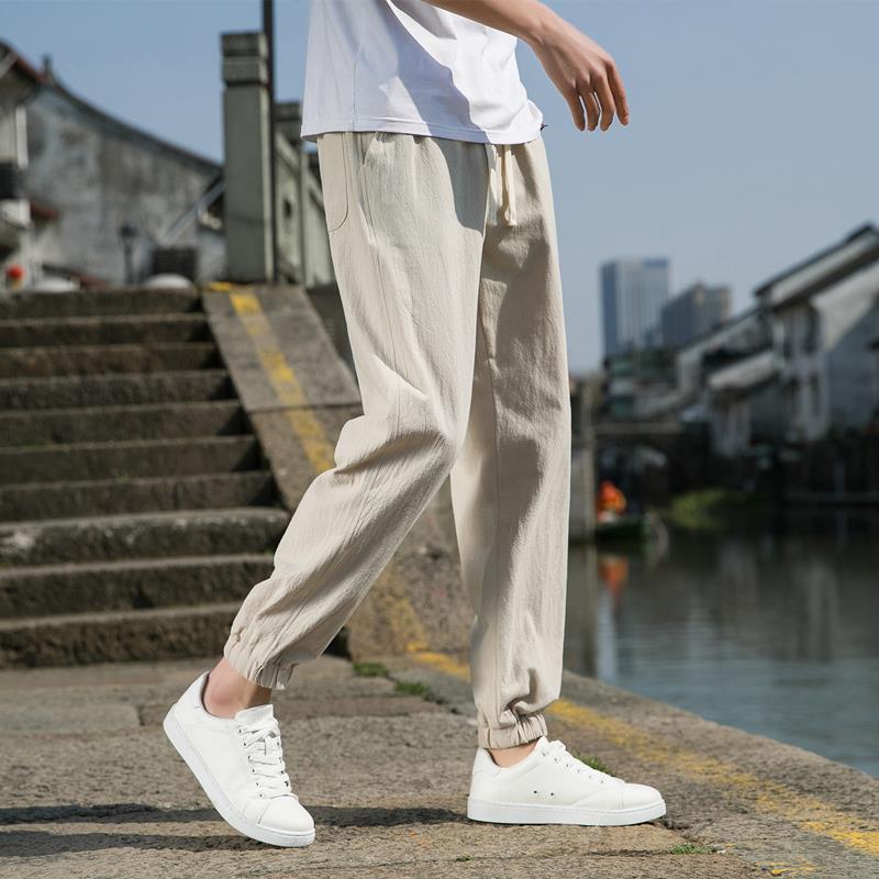 中国风亚麻男裤子春夏季棉麻束脚哈伦裤潮流男士休闲宽松直筒长裤