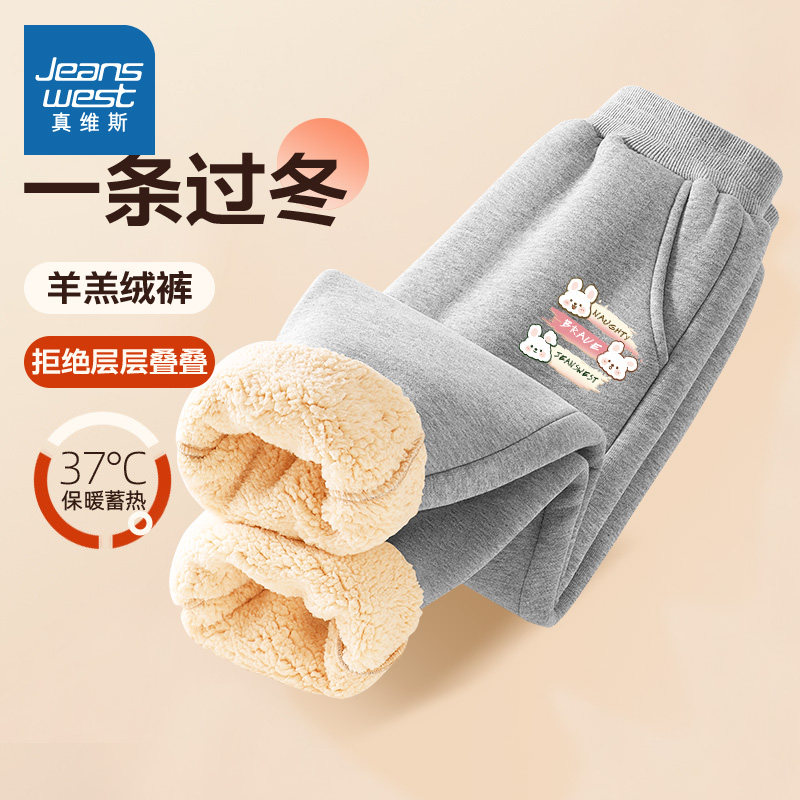 真维斯童装女童加绒裤冬季女孩羊羔绒卫裤儿童裤子秋冬款2025新款