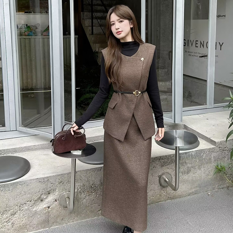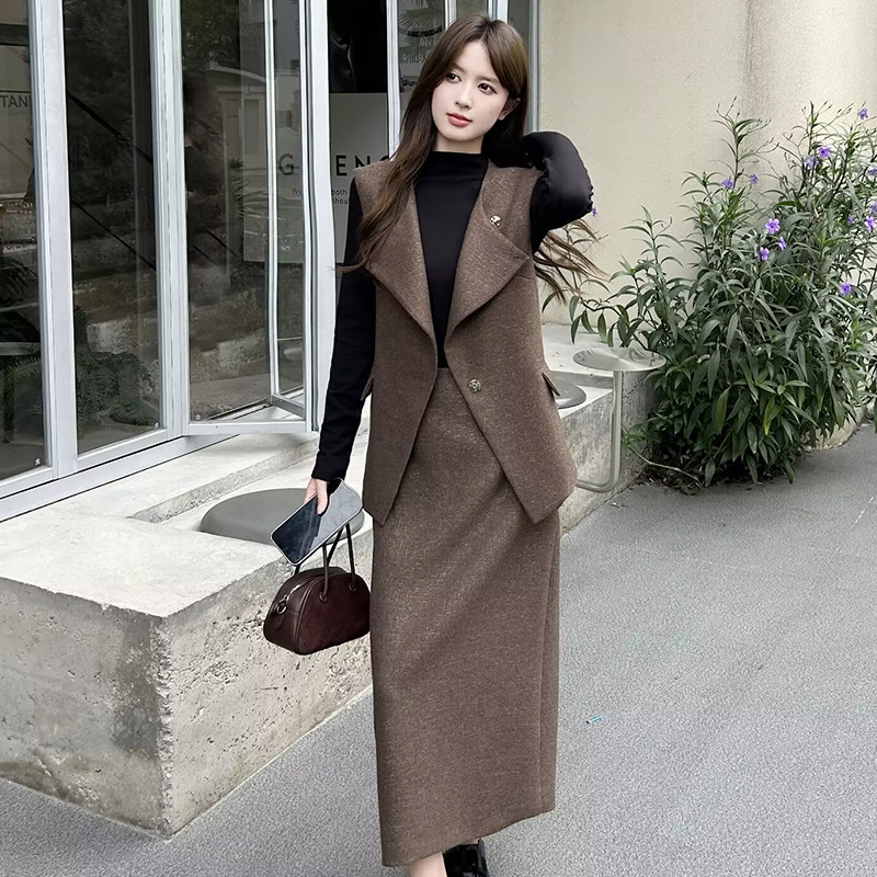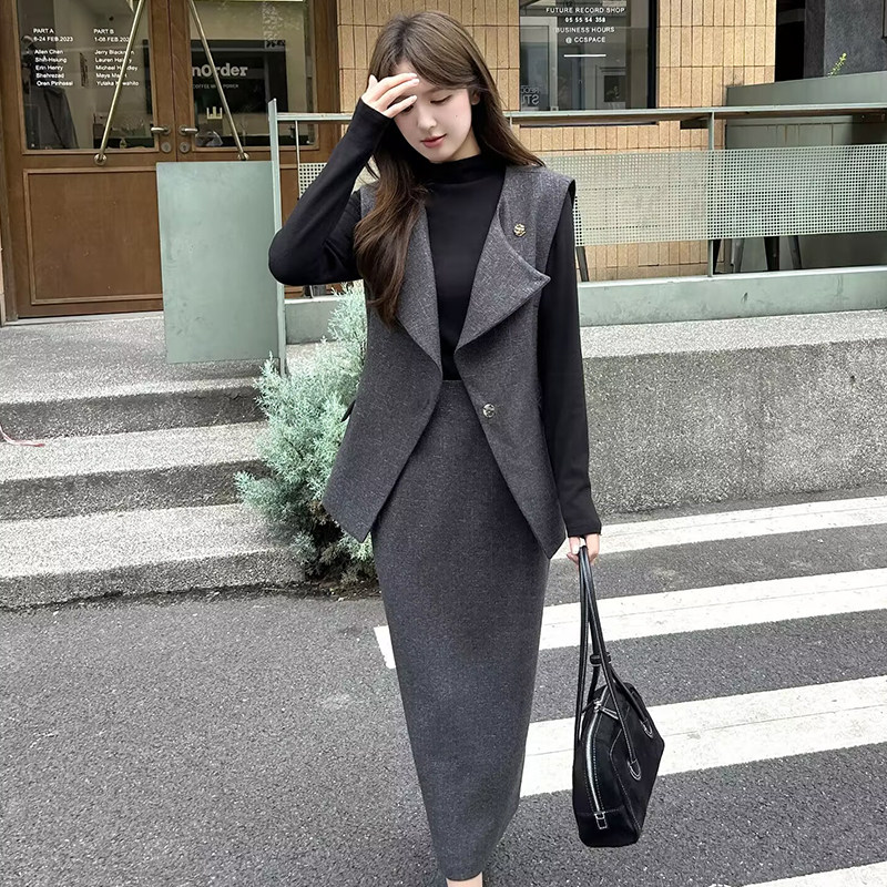 轻熟简约风马甲套装裙子女2025秋季高级感气质名媛三件套时尚穿搭