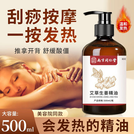 同仁堂艾草生姜按摩精油全身体经络发热通精油按摩开背女性全身