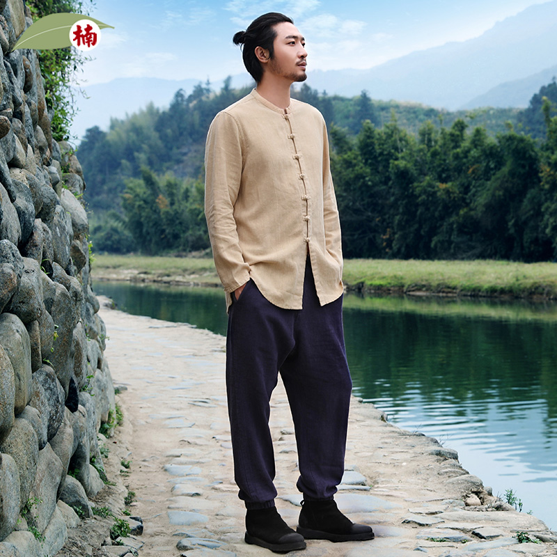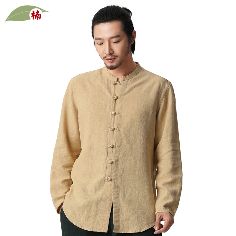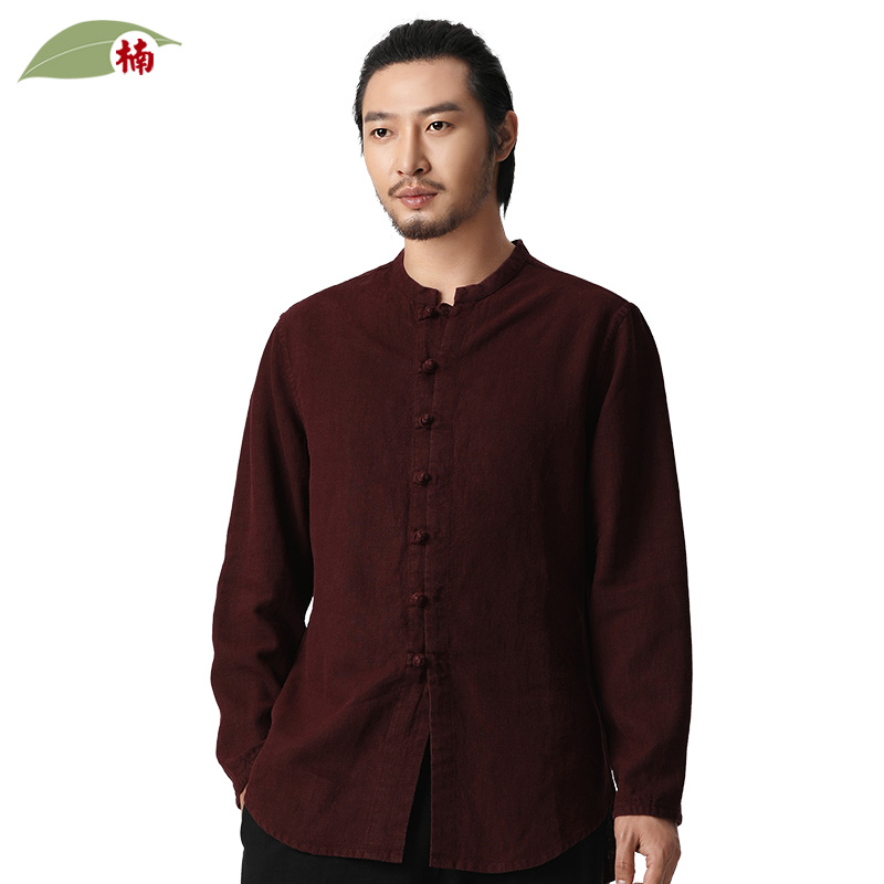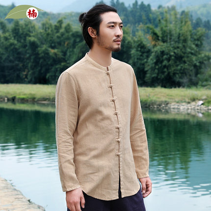 楠中国风男装秋季上衣苎麻唐装衬衫男复古新中式盘扣上衣衬衣萧枫