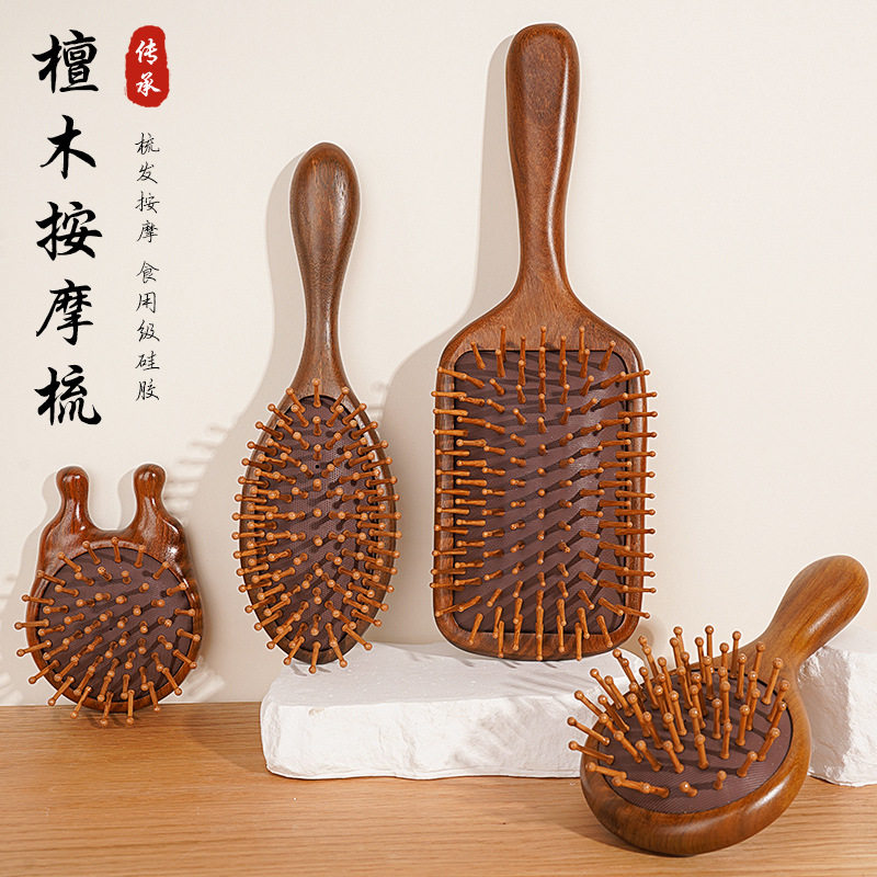 金丝檀木家用按摩天然实木大号气囊梳头皮按摩卷发梳子大板气垫梳