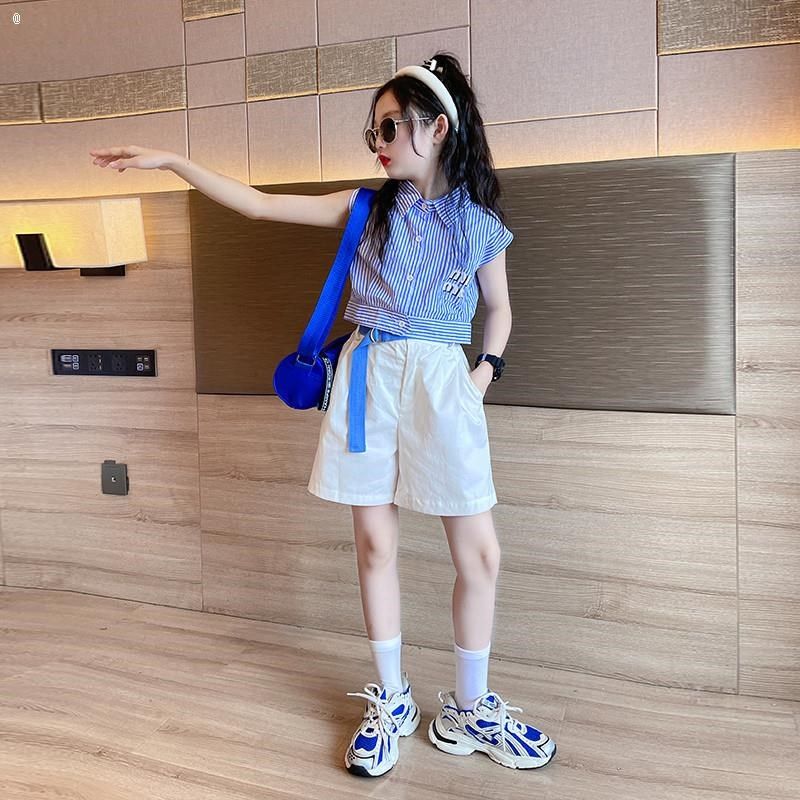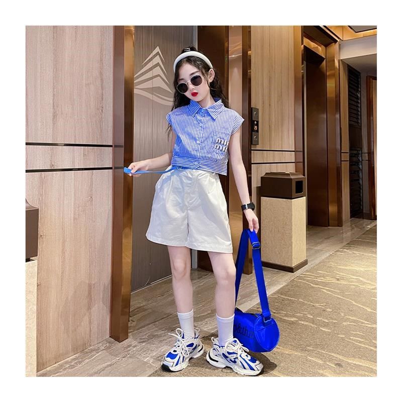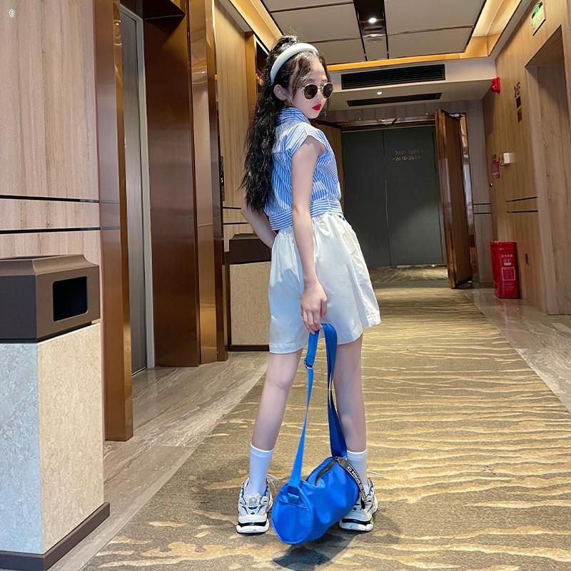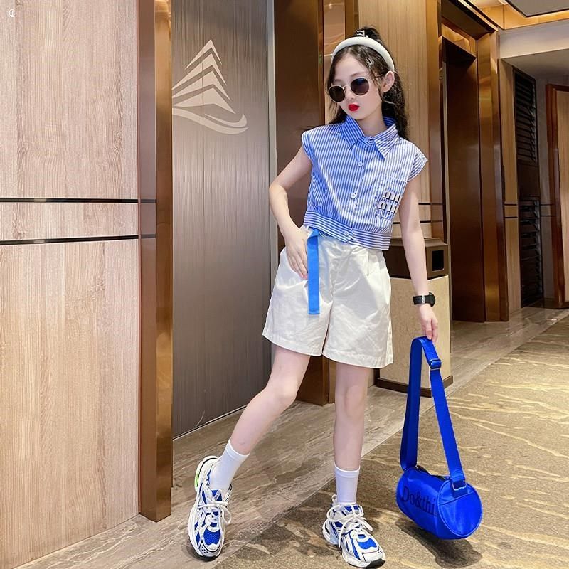女童夏季套装2024o新款儿童女孩网红洋气夏装女大童夏款短裤两件