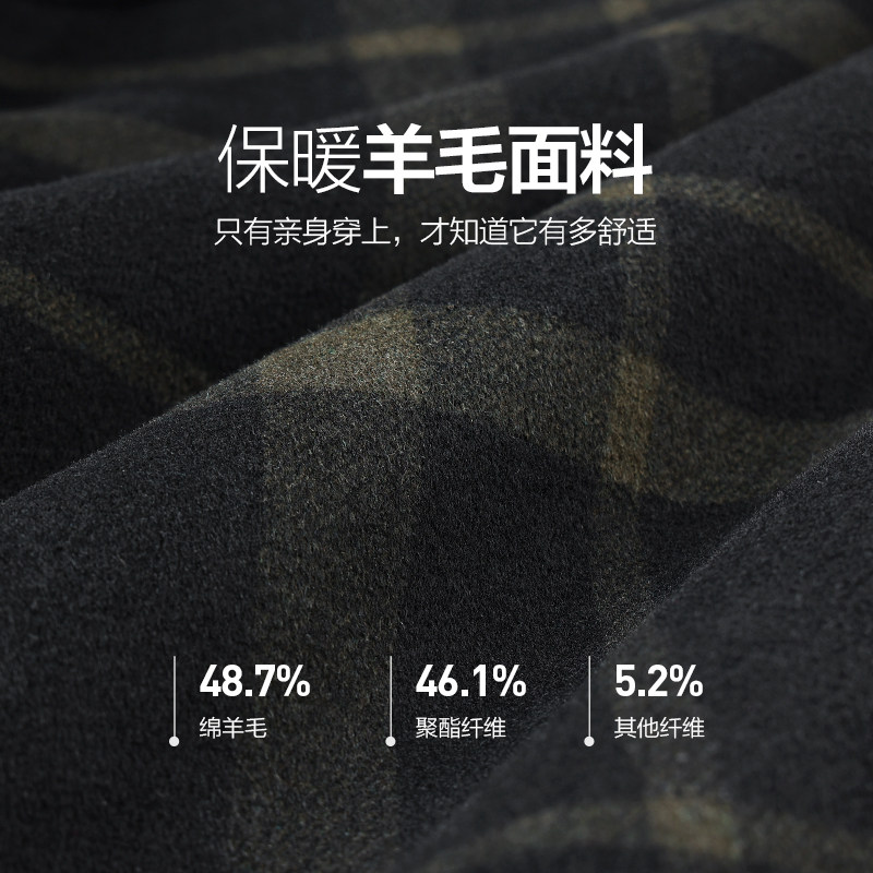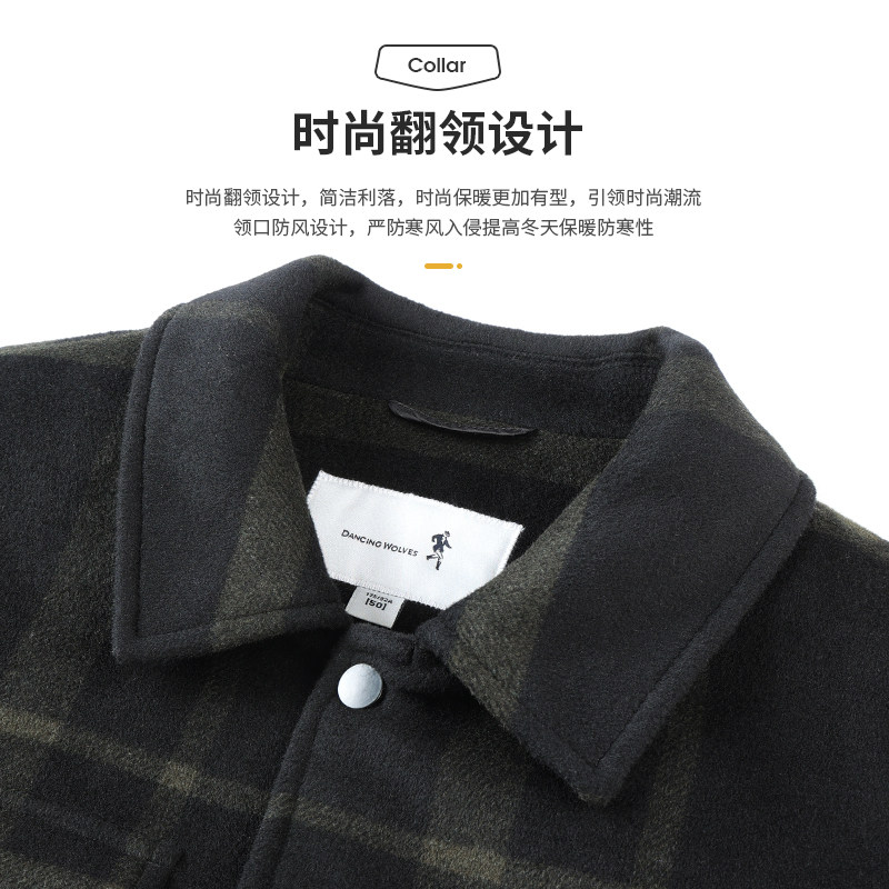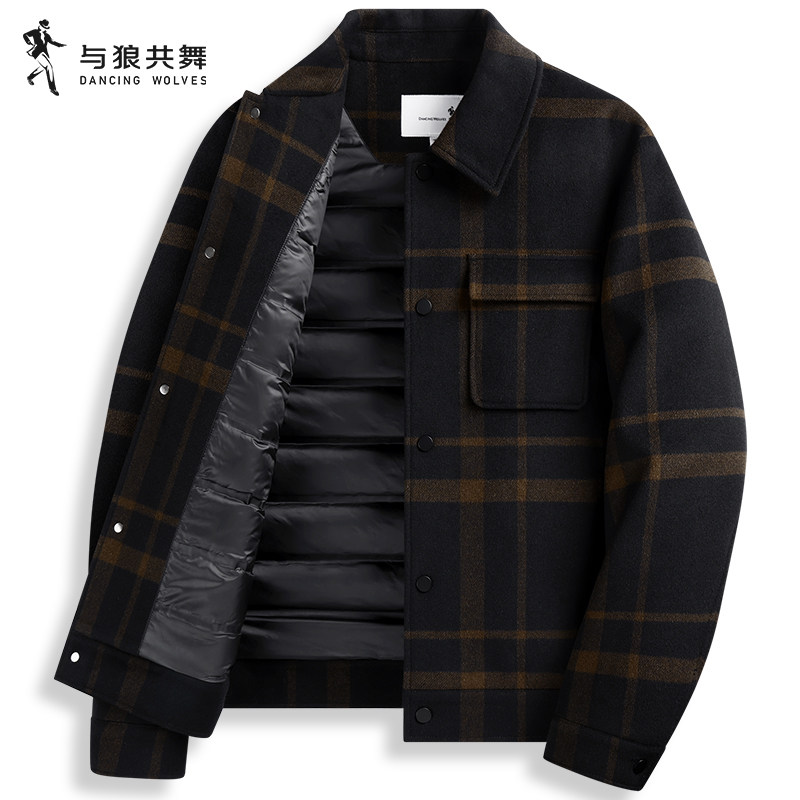 【薄羽绒】与狼共舞羊毛呢格子夹克男2025秋冬季新款休闲翻领外套