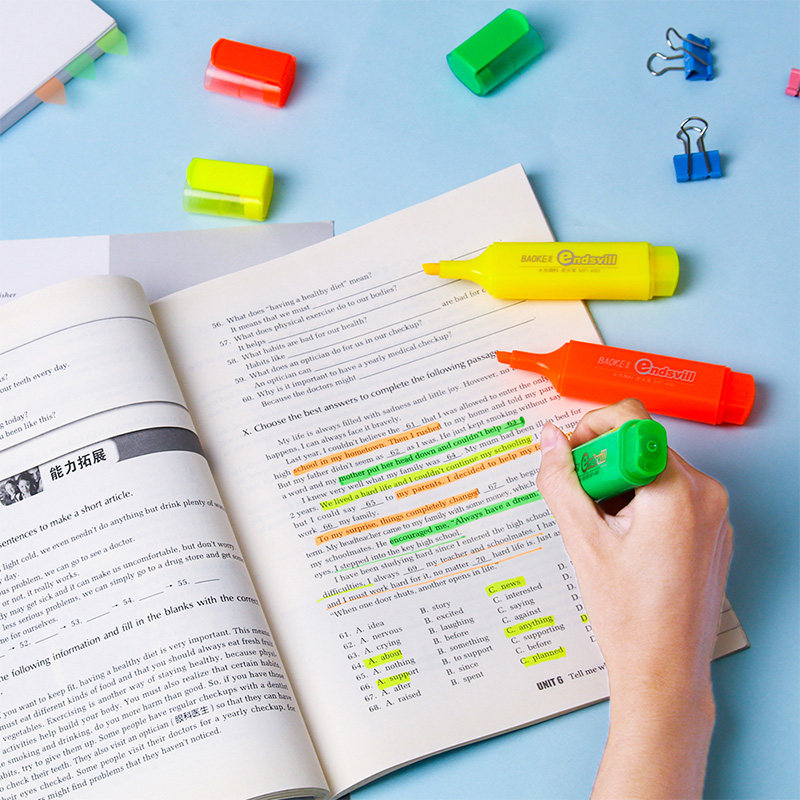 宝克划重点荧光笔标记笔彩色手账笔大容量斜头做笔记学生背书神器
