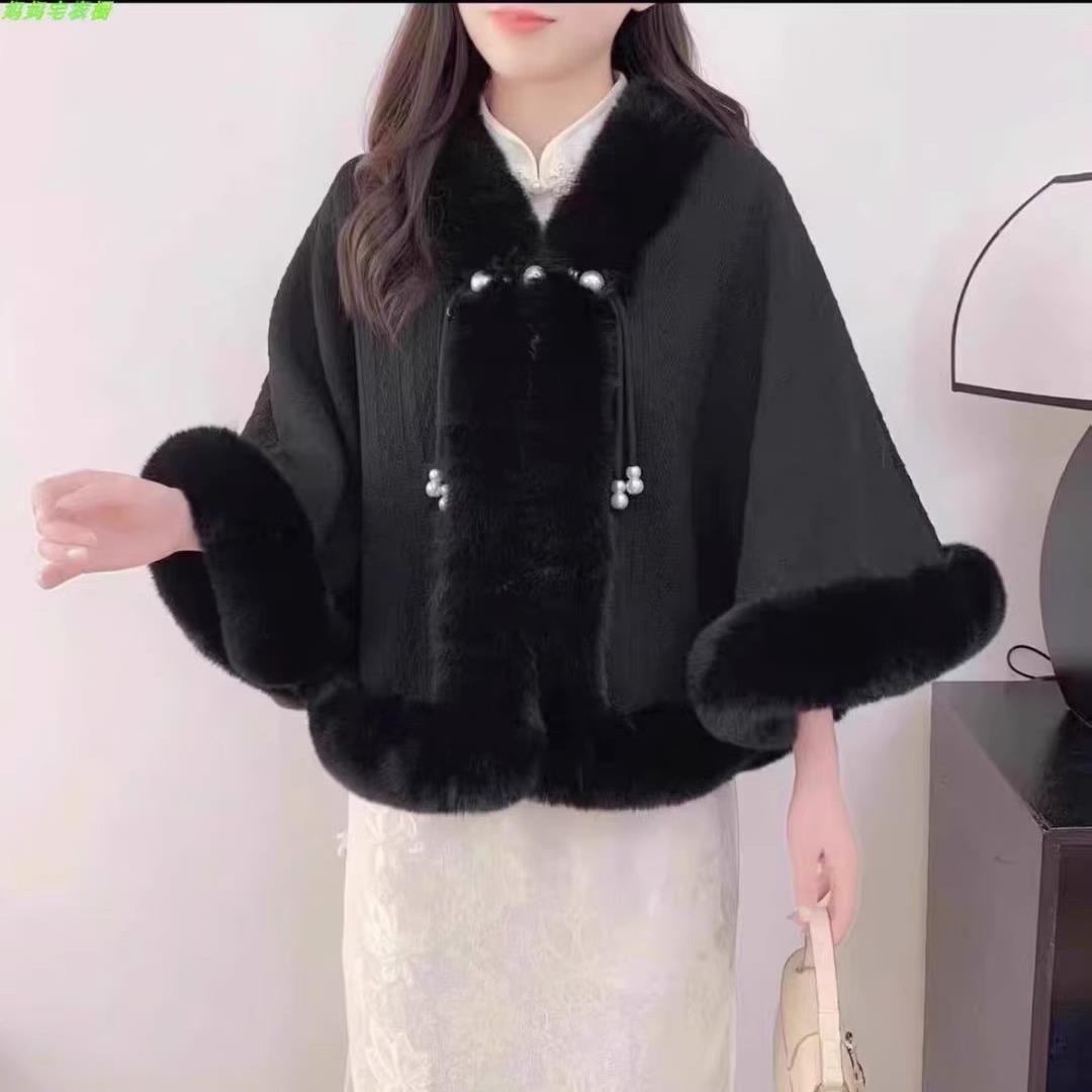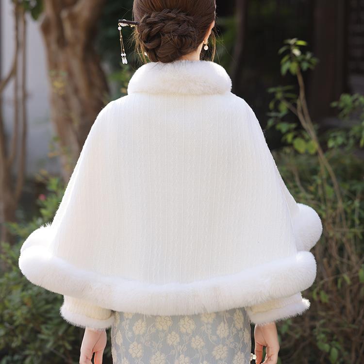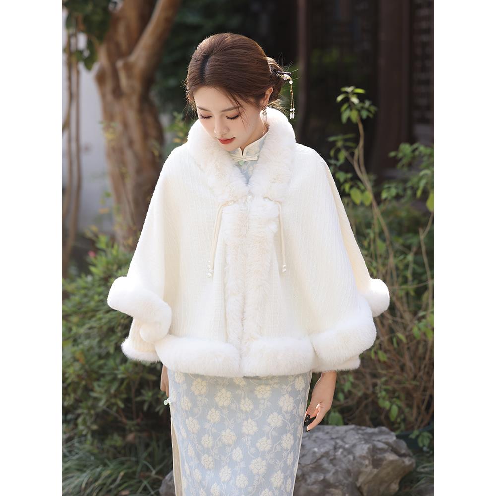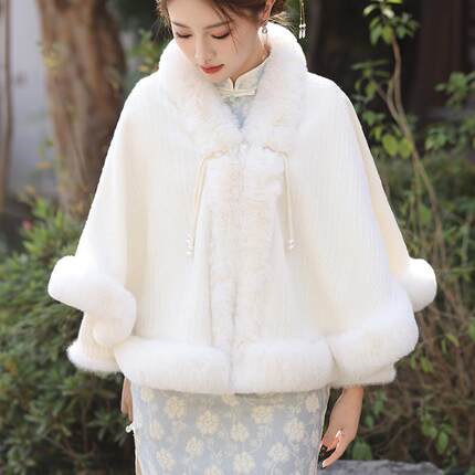 秋冬洋气百搭女士围巾披肩国风新款旗袍汉服外搭加绒加厚毛1010c