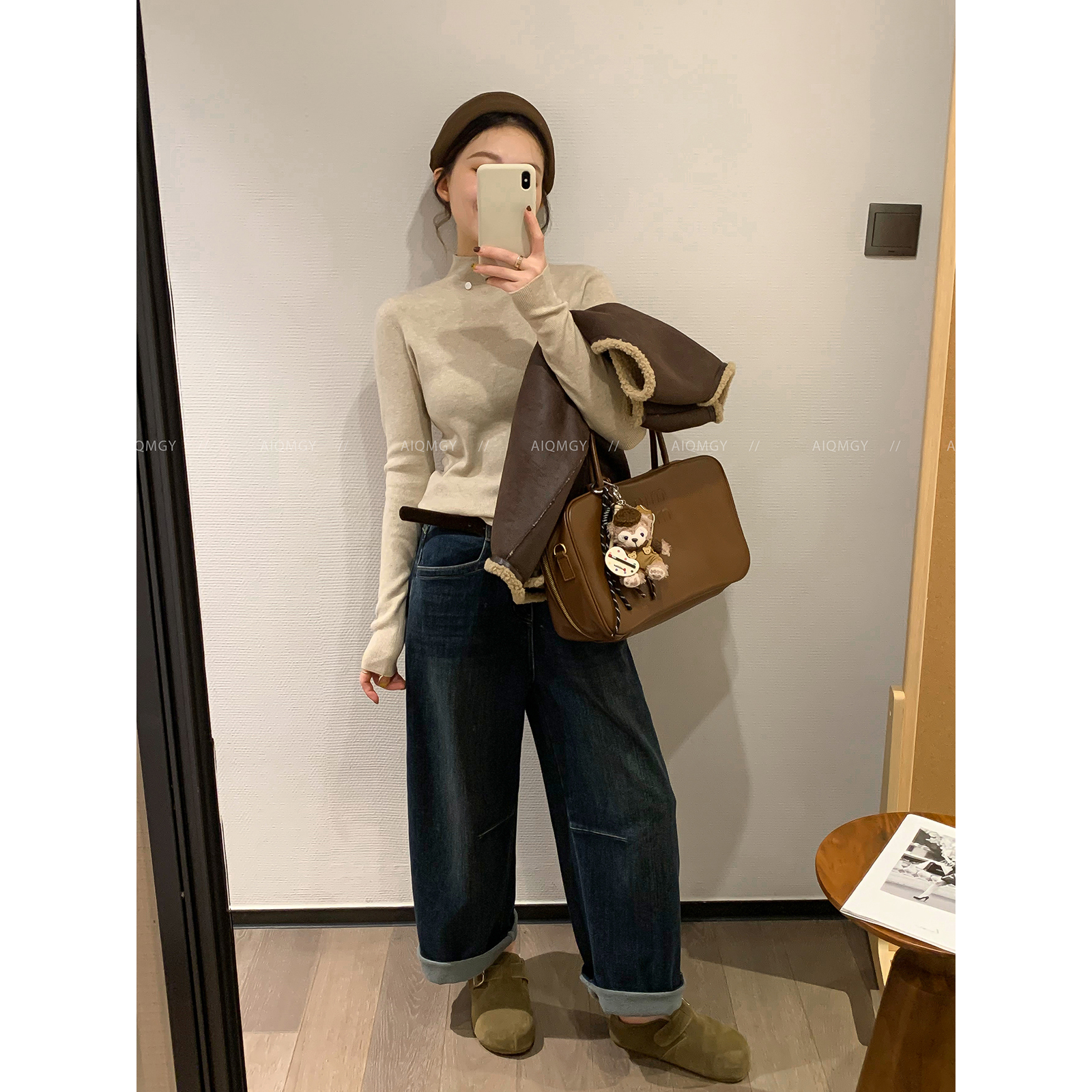 爱情魔鬼鱼 纯色简约长袖针织衫女2025冬季新款显瘦百搭打底上衣