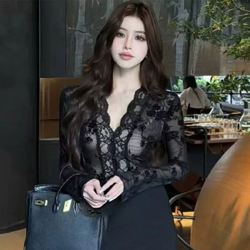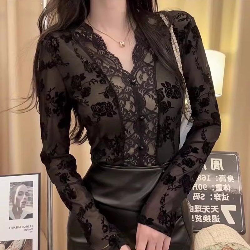 常规/加绒V领蕾丝打底衫女内搭秋冬款轻熟风加绒加厚保暖上衣
