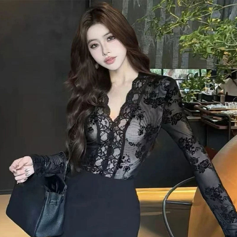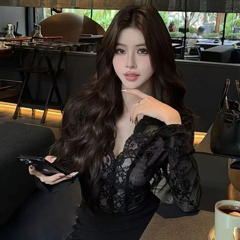 常规/加绒V领蕾丝打底衫女