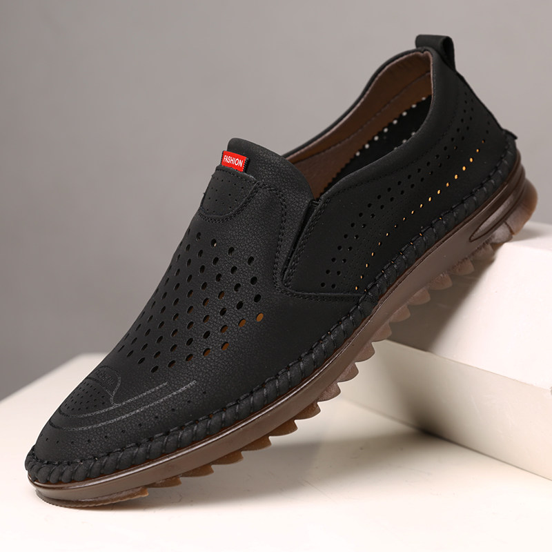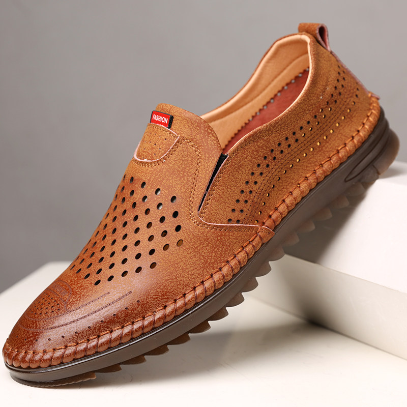 皮鞋男夏季凉皮鞋白色男士休闲鞋商务真皮洞洞男鞋透气镂空皮凉鞋