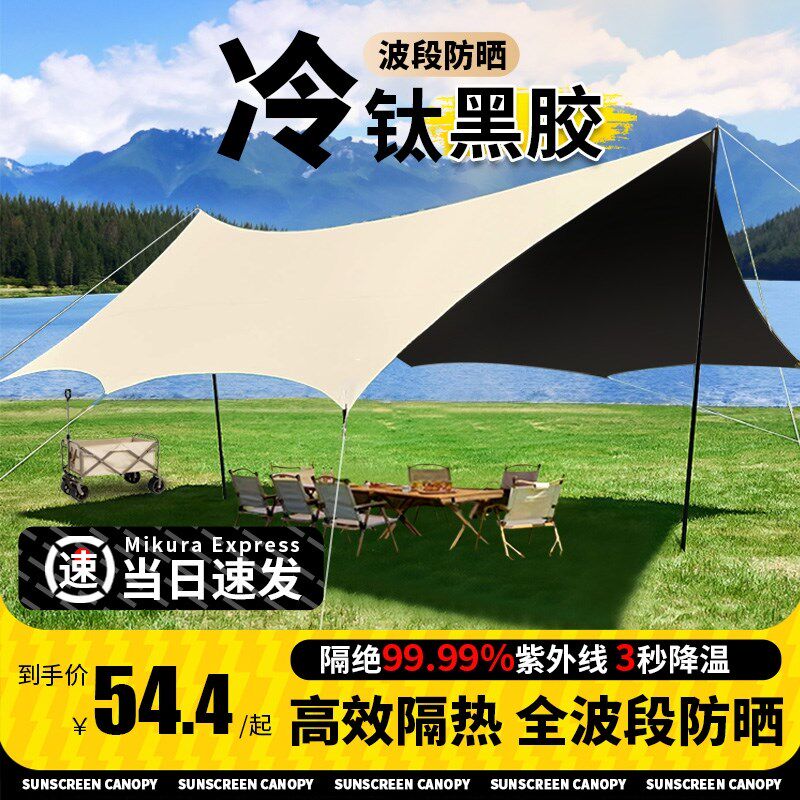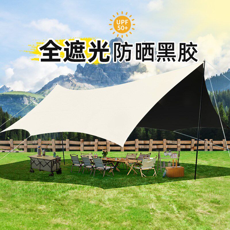 黑胶天幕帐篷户外露营桌椅六件套野营野餐装备便携防晒遮阳棚折叠