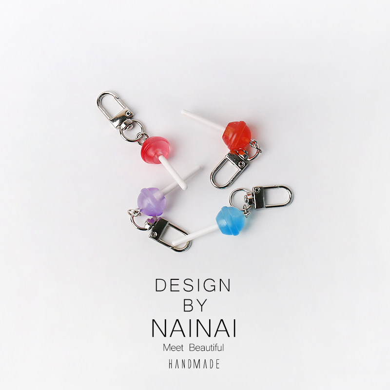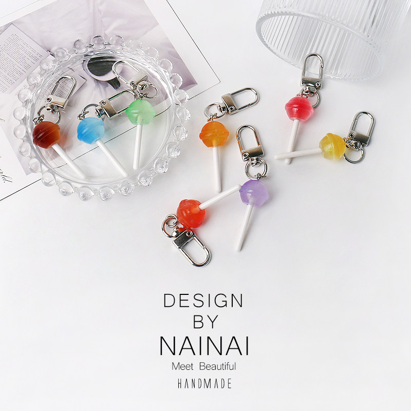 甜美仿真彩色透色棒棒糖钥匙扣糖果挂饰包包配饰日常少女心挂件品